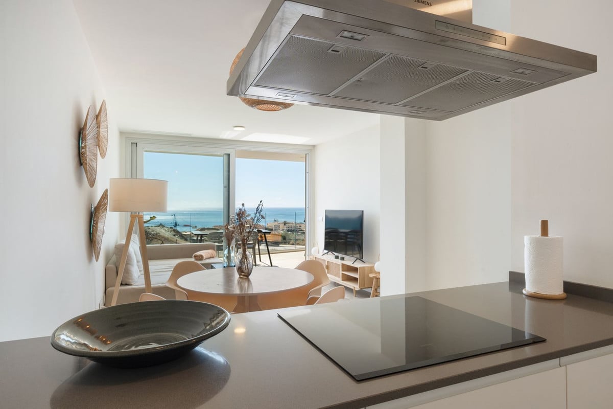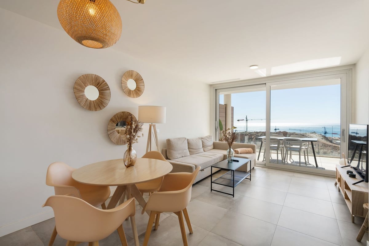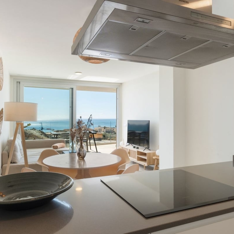 The luxurious and state-of-the-art residential complex impresses with its innovative design and highest quality. The apartment is equipped with a full kitchen that elegantly intertwines with the living room and has access to the terrace. There are two spacious bedrooms and two bathrooms, with the master bedroom having not only an en-suite bathroom but also a walk-in closet and direct access to the terrace.