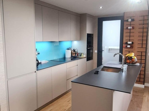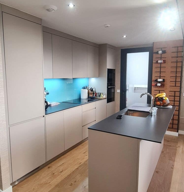 ????Kitchen: italian design with Dekton marble island and premium Neff and Bosch appliances.