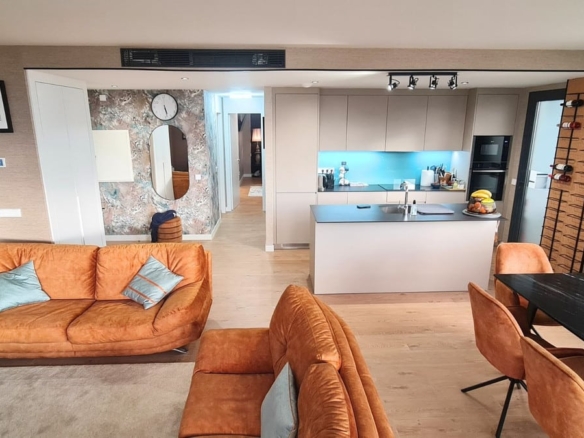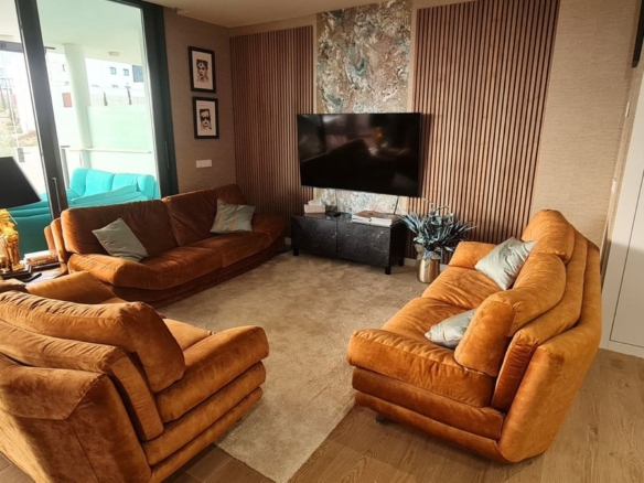 imagine waking up every morning with the fresh breeze of the Mediterranean. This stunning 150 m2 corner apartment in the heart of Fuengirola, near the Hilton Higueron Resort, blends luxury and quality living. Designed by a renowned interior designer, every detail harmonizes the essence of the sea and sand.