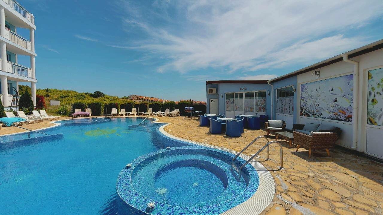 The “Rio” complex is located in the villa zone between the Sunny Beach resort and the village of Kosharitsa, at the foot of the Balkan Mountains (Stara Planina).
