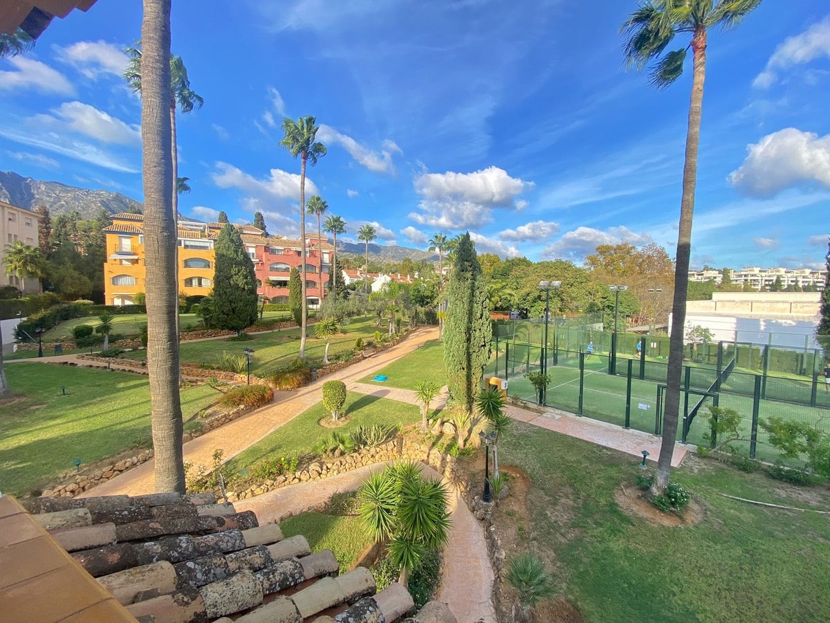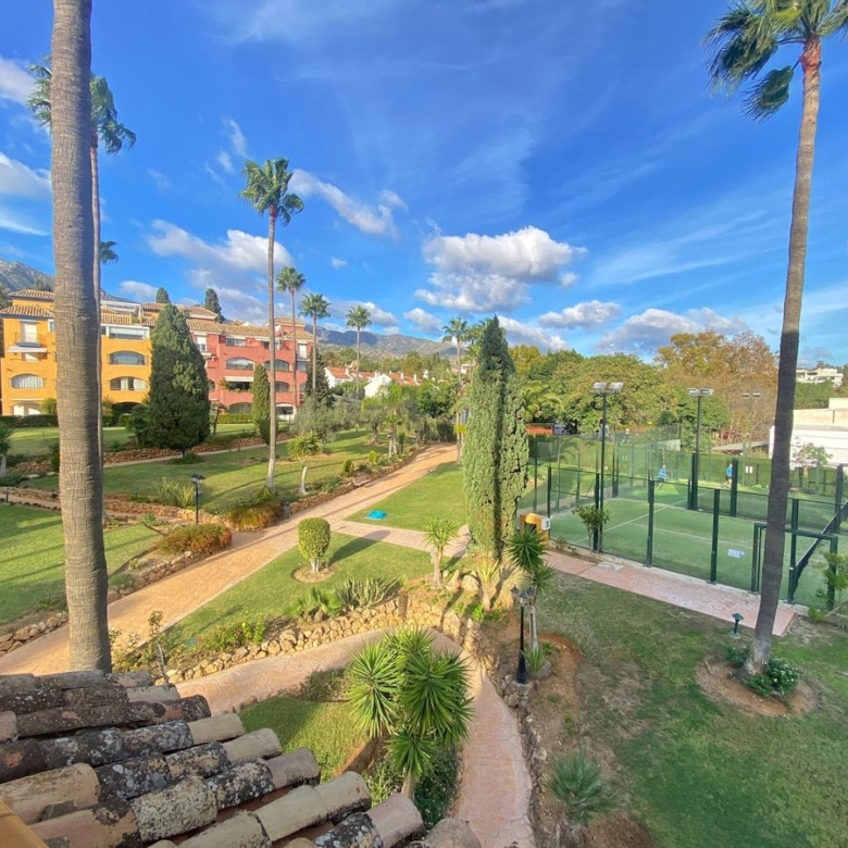 The development has large garden areas, 2 paddle tennis courts and a beautiful large pool. Concierge service during the day.
