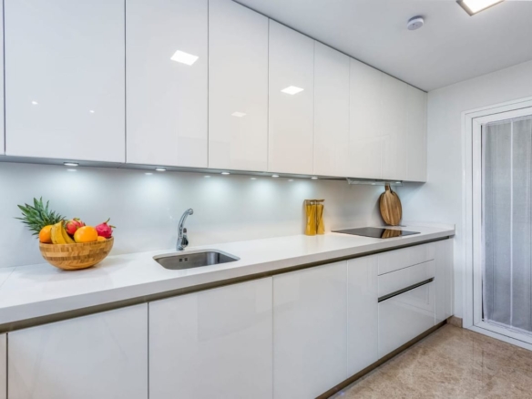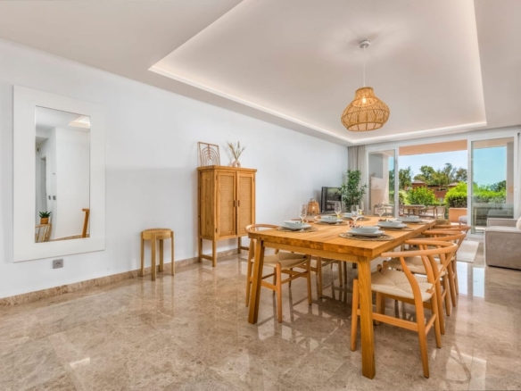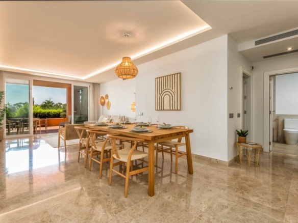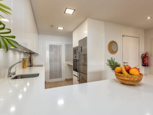 This ground-floor, south-east-facing two-bedroom apartment offers a spacious, fully equipped luxury kitchen, a utility room, and a generous living area that opens onto a 57m2 partially covered terrace—perfect for embracing the outdoor lifestyle. The apartment also includes two stylish bathrooms, one of which is en-suite.