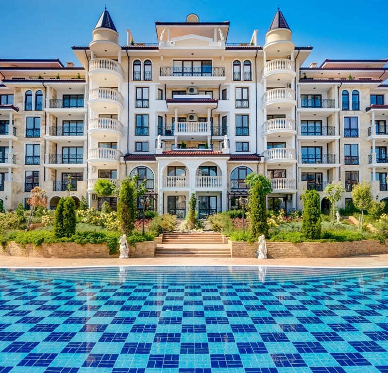 The Poseidon VIP Residence Club is located in close proximity to Nessebar, nestled between the picturesque old town center and the beach – about 350 m to 600 m away.