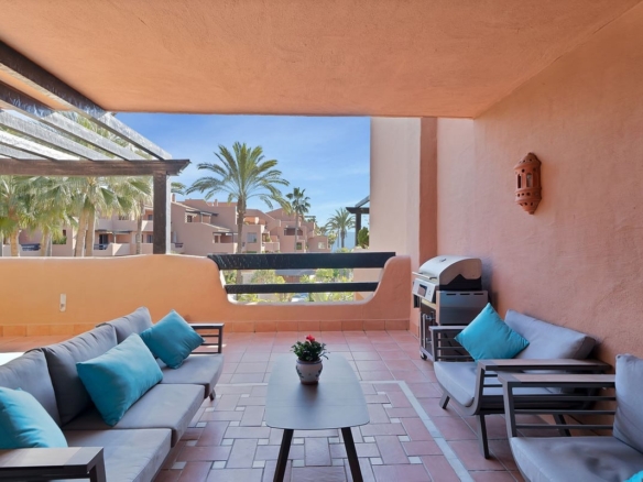 Nestled along Estepona’s stunning coastline, this exquisite 2-bedroom, 2-bathroom first-floor apartment in the prestigious Mar Azul community offers a rare opportunity to embrace Mediterranean luxury.