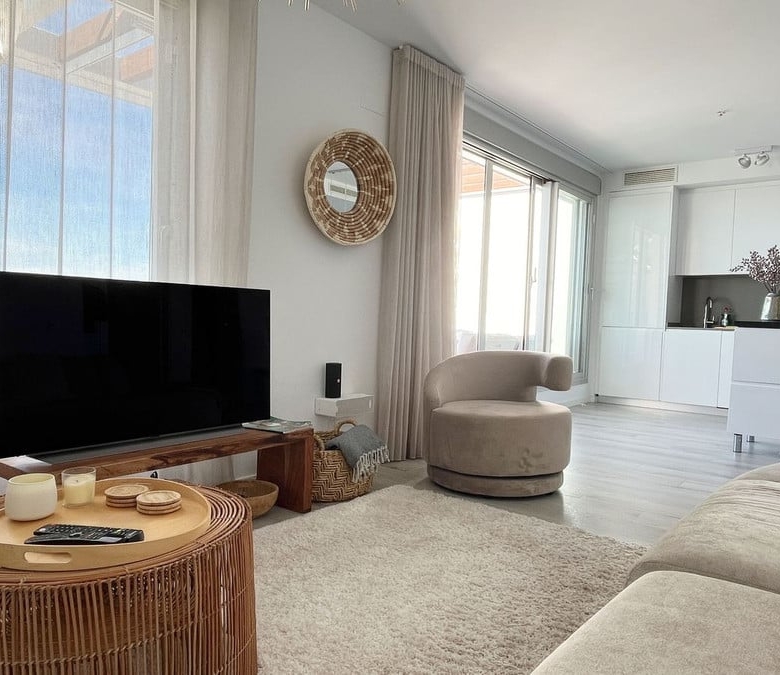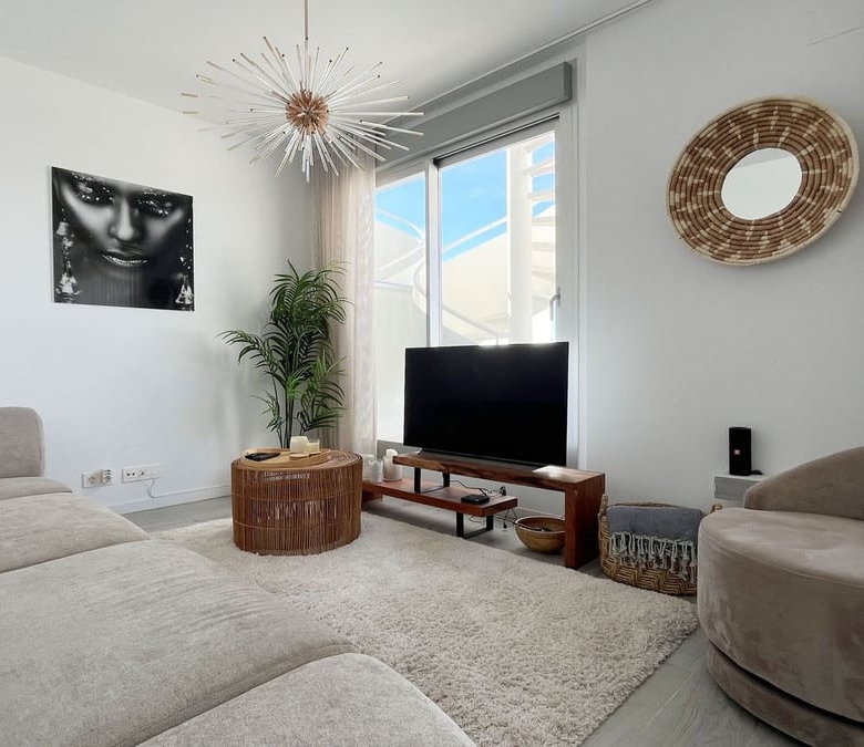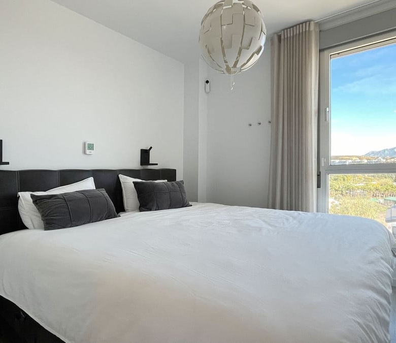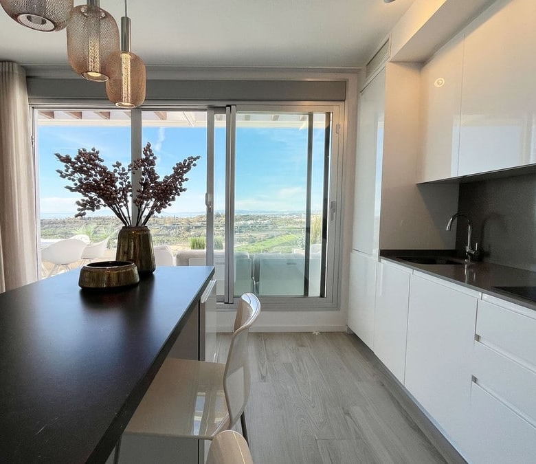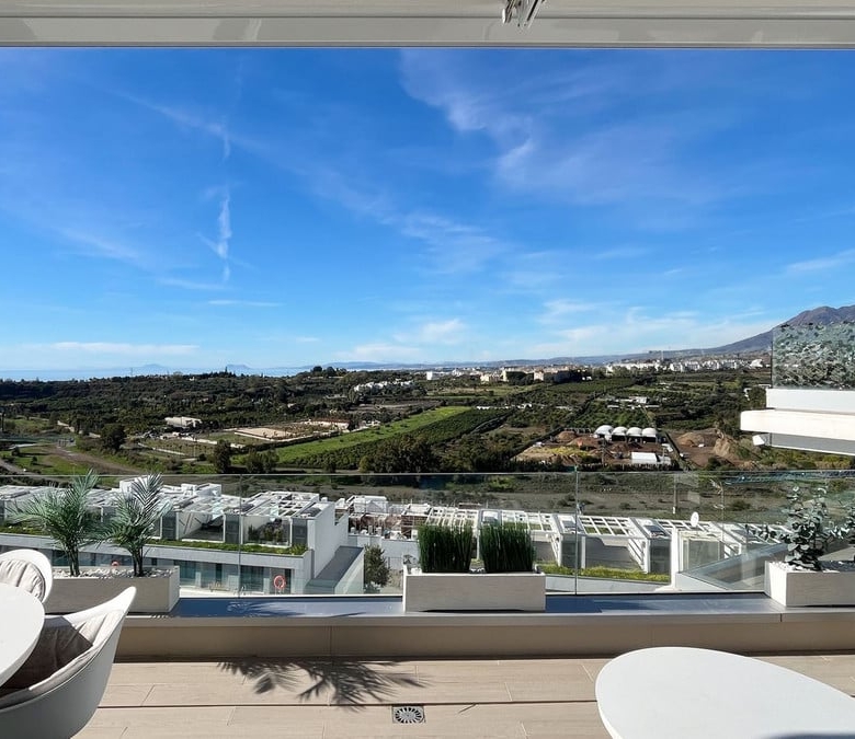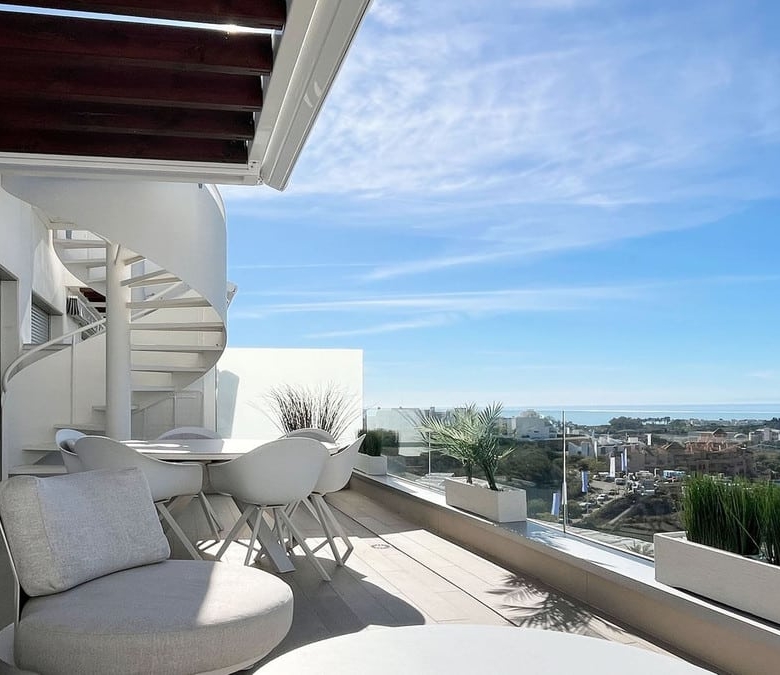 Step out onto the terrace, and you’re immediately greeted with impressive views of Gibraltar and Africa, a beautiful backdrop for any day. The first terrace is equipped with a dining table and a lounge area, ideal for meals outdoors or simply enjoying the fresh air.