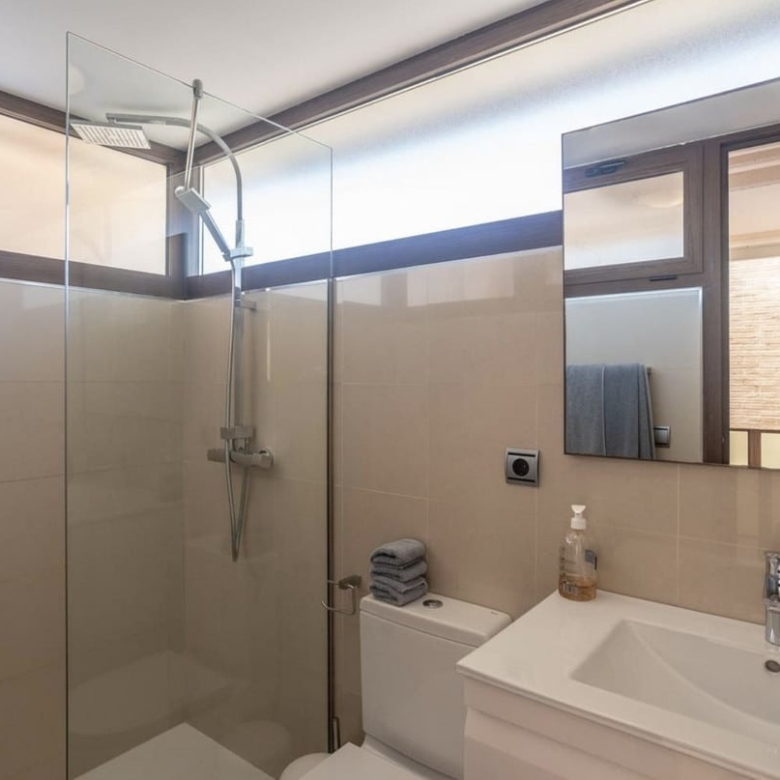 Upper floor, separate bedroom and bathroom, terrace with a private pool.