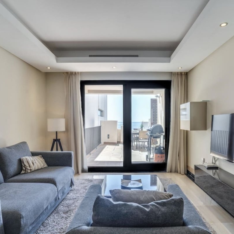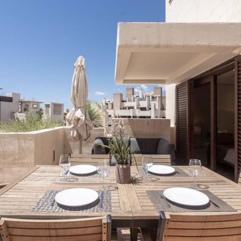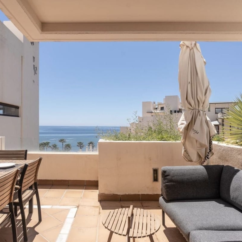 Two bedroom duplex penthouse, 3rd and 4th floor, in the frontline complex . South orientation with sea views.