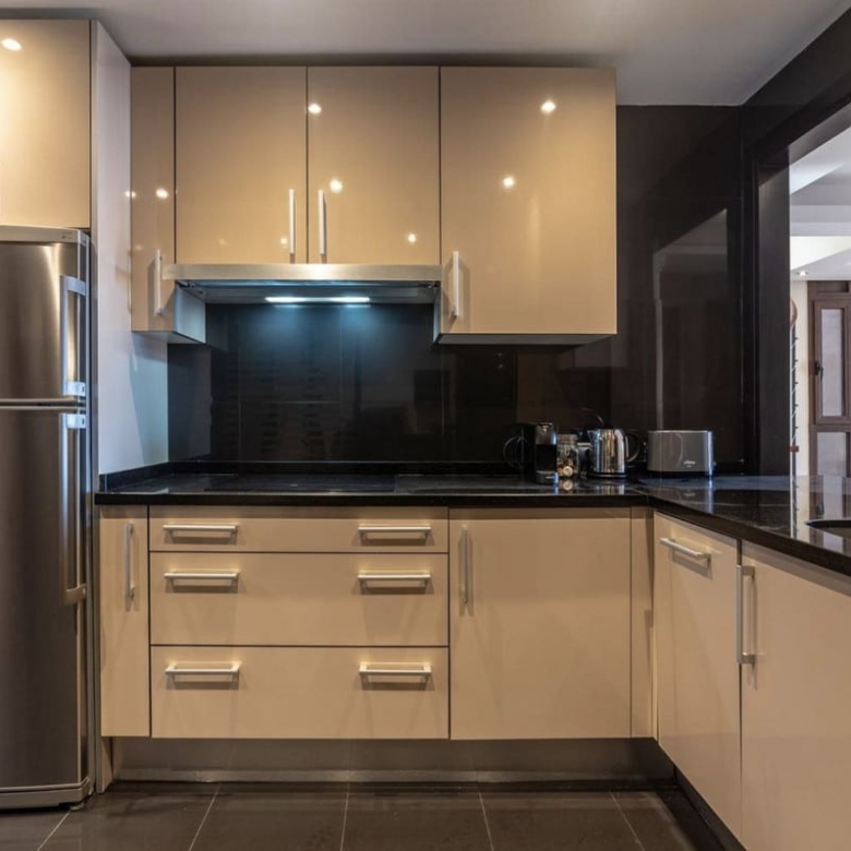 Entrance hallway, living and dining area, fully fitted kitchen with laundry, master bedroom en suite and a guest toilet. Direct access to the terrace.
