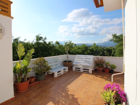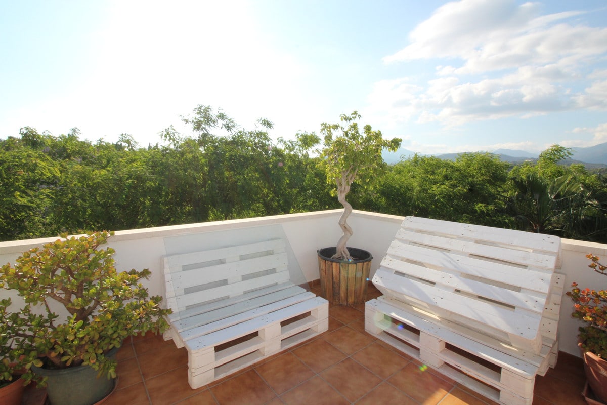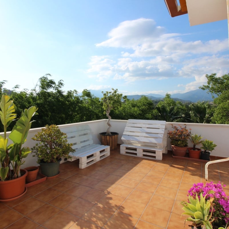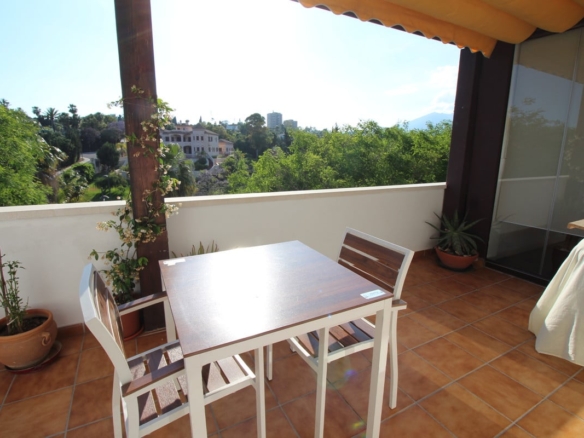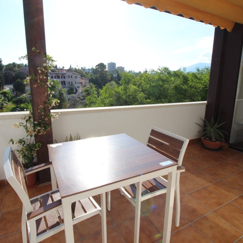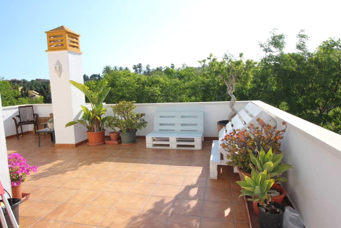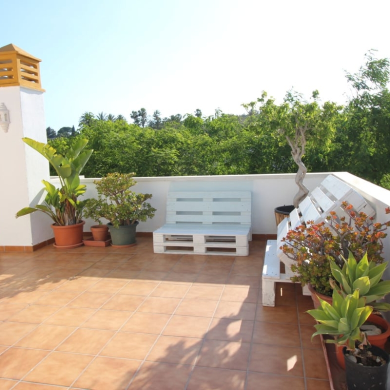 Cute corner penthouse on a fourth floor close to Puerto Banus. The property consist of 2 bedrooms and two bathrooms plus a studio and a spacious living room with direct acces to the big terrace with open wiews and so private.This impeccable property is selling totally furnished, further it is within a Complex that offer two big swimming poolspadel-tenir court, kids area and 24 hours security. The complex is situated 5 minutes walking to Puerto Banus and his beaches, and next to most prestigious Costa del Sol golf courses.