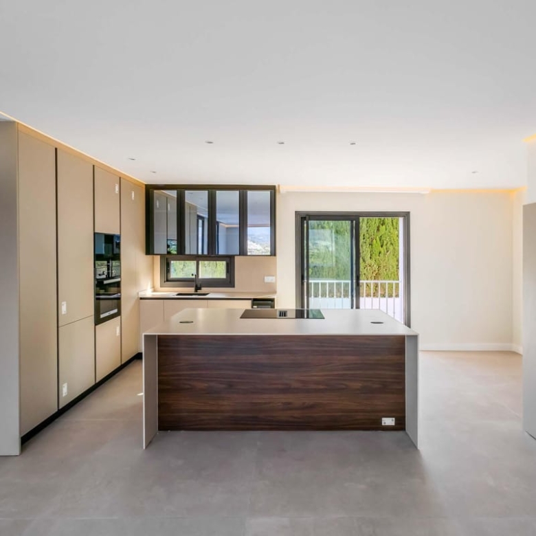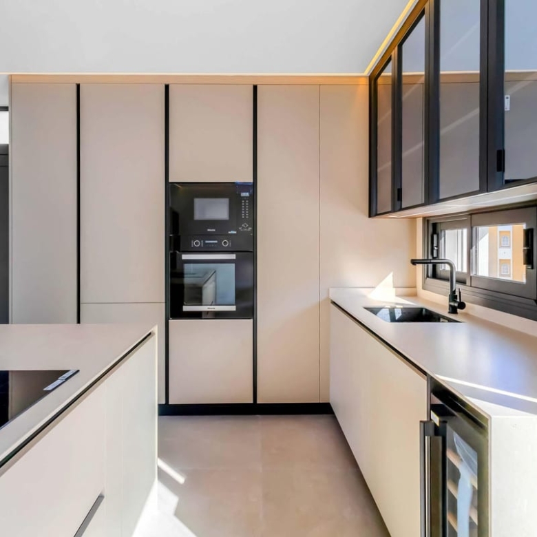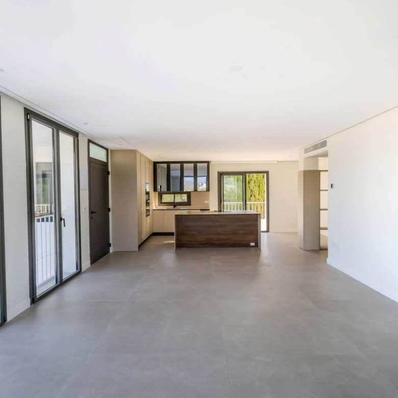 Step outside to enjoy the 20m2 private terrace, offering breathtaking views of the communal pool and landscaped gardens. The terrace, with its uncovered design and elegant glass doors, provides the perfect setting for al fresco dining or simply relaxing in the Mediterranean sun. Residents also benefit from access to the communal pool and garden areas, enhancing the overall appeal of this exclusive property.