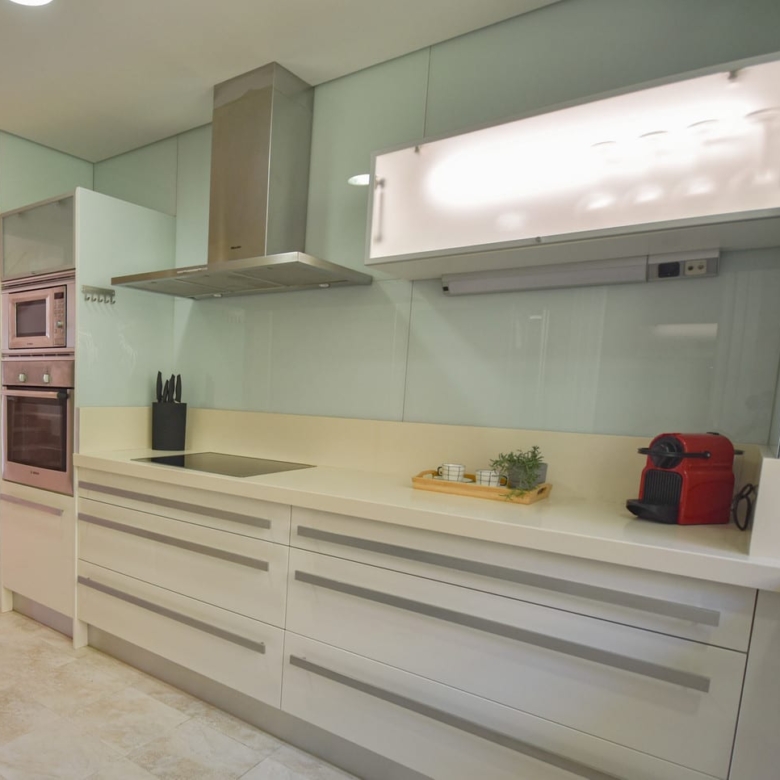 The kitchen is fully equipped with microwave, two-door refrigerator, oven, dishwasher, kettle, toaster, etc. in the same kitchen there is a room where the washing machine is and a large space for the iron.