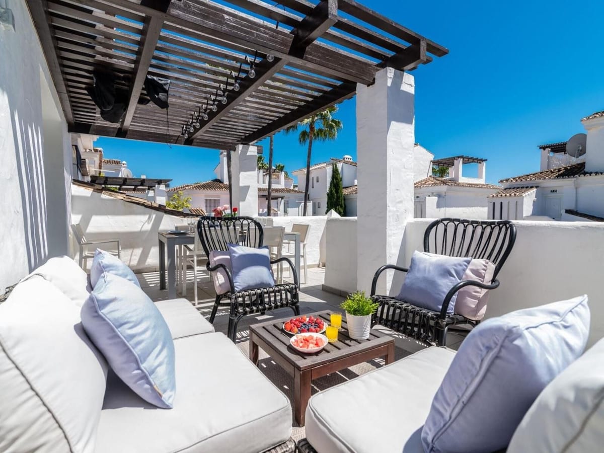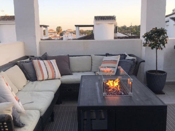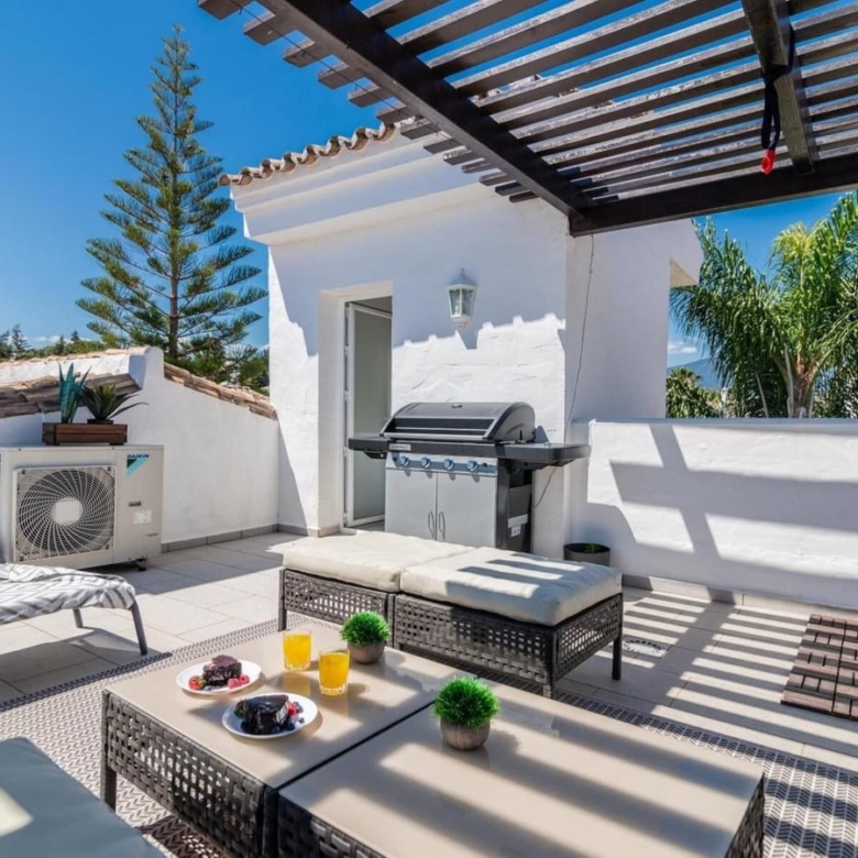 Welcome to this exceptional corner penthouse located in the heart of the sought-after Los Naranjos de Marbella (Nueva Andalucia). This exclusive residence offers two spacious terraces, perfectly positioned to take advantage of the sunny Marbella climate and surrounded by a lush garden.