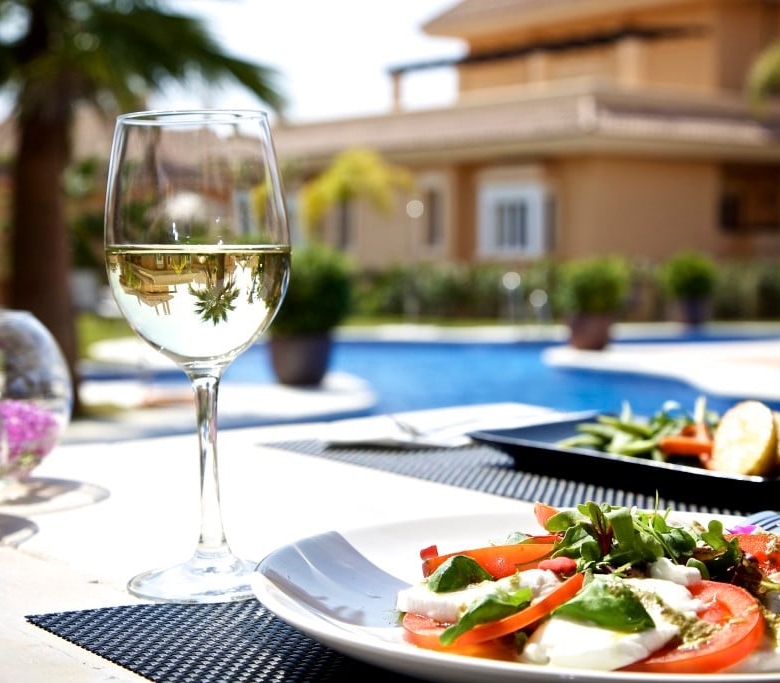 Poolside bar and restaurant serving excellent cuisine year-round