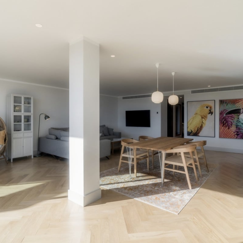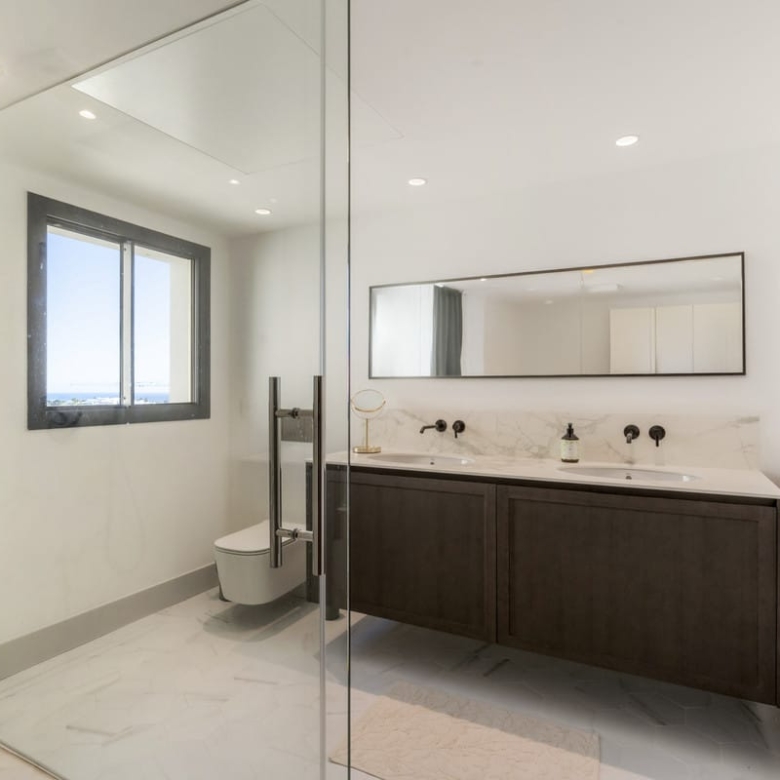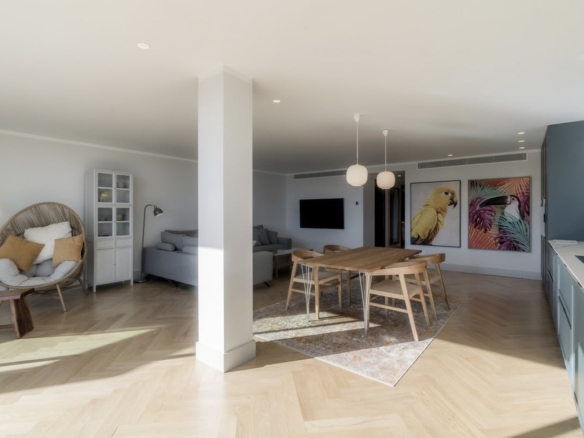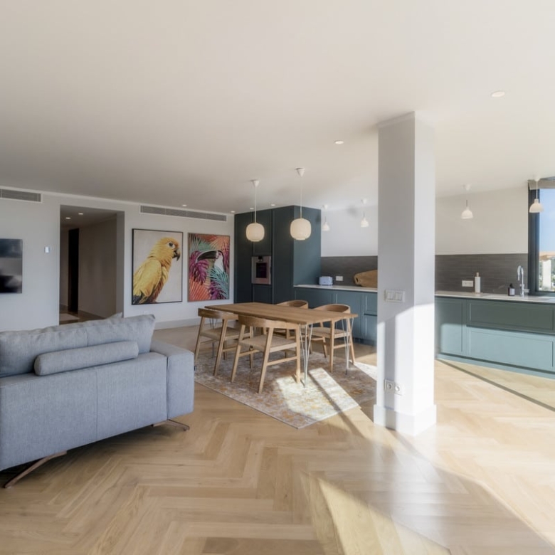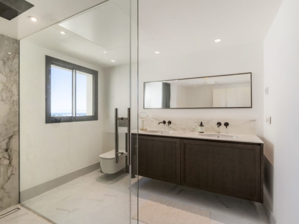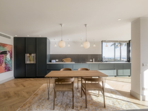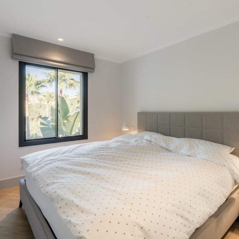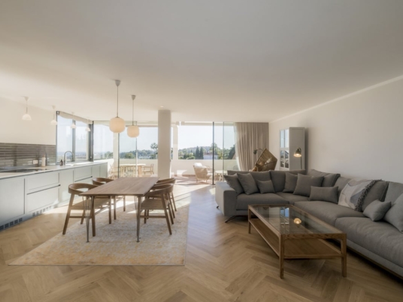 Step into luxury with this newly renovated 2-bedroom, 2-bathroom middle-floor apartment in the heart of Nueva Andalucia. Designed for modern living, it features a state-of-the-art Gaggenau kitchen, elegant herringbone wood flooring, and a spacious southwest-facing terrace offering breathtaking panoramic views.