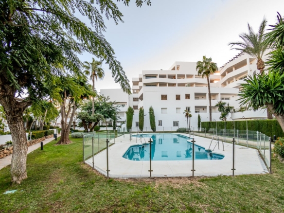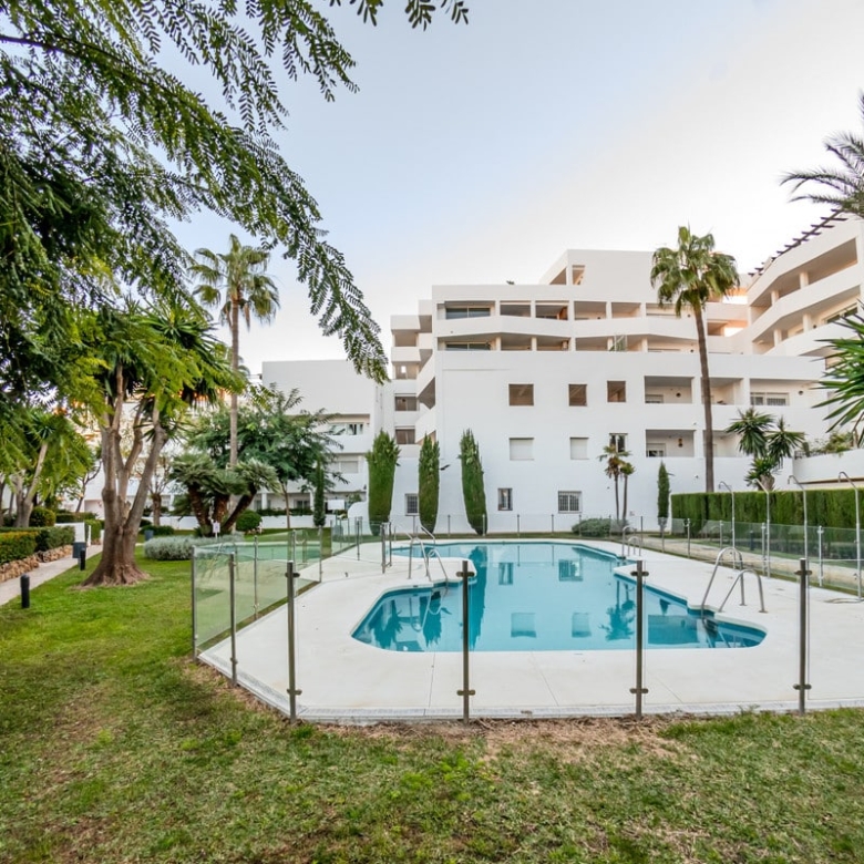 This modern and spacious 2-bedroom, 2-bathroom apartment is perfectly situated in a prestigious gated community with stunning views of La Concha mountain. Designed for contemporary living, the open-plan layout is filled with natural light, seamlessly connecting the stylish living and dining areas to an expansive private terrace—ideal for relaxation and entertaining. Both bedrooms are generously sized, including a master suite with an en-suite bathroom, while the additional bathroom features high-end finishes for a touch of luxury. Residents enjoy access to a communal swimming pool surrounded by lush tropical gardens, ensuring a peaceful retreat. The property also includes secure underground parking and private storage for added convenience. Located in an exclusive setting, this apartment combines modern elegance, premium amenities, and breathtaking surroundings for a refined lifestyle.