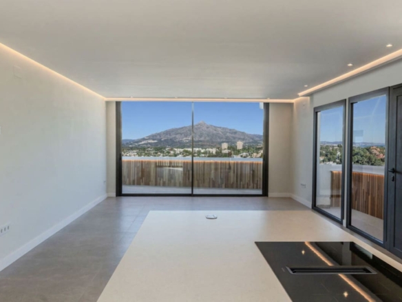 A home within walking distance of Puerto Banus. Located on the top floor of the complex with open views, this property has easy access via a lift from the secure underground parking where there is also a storeroom.