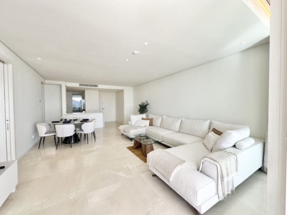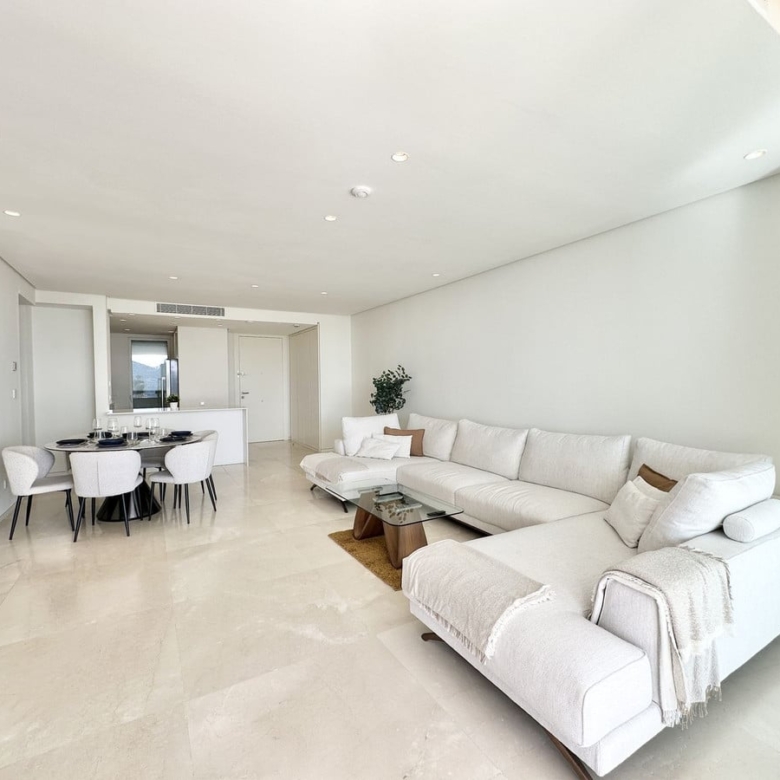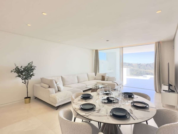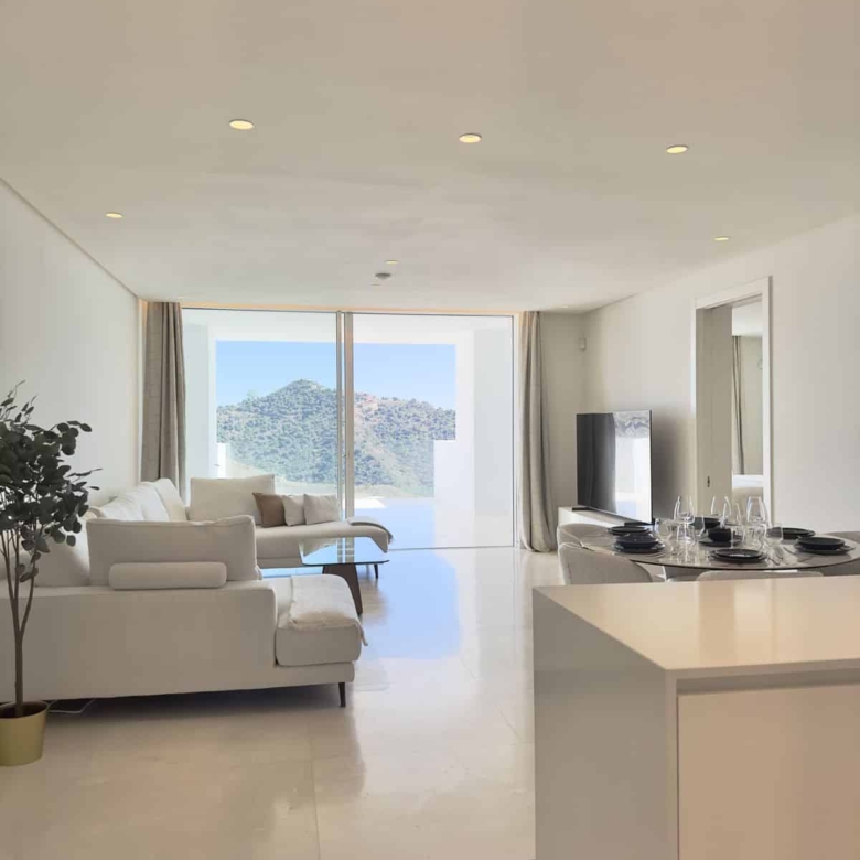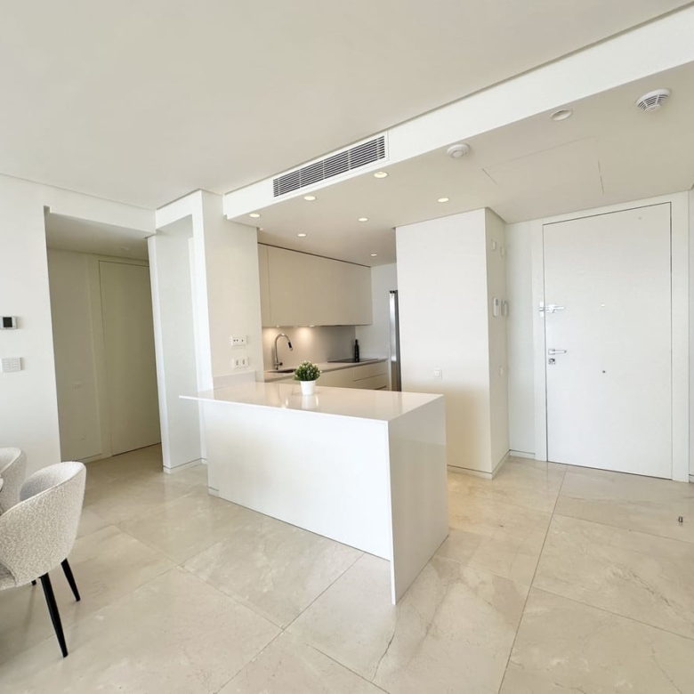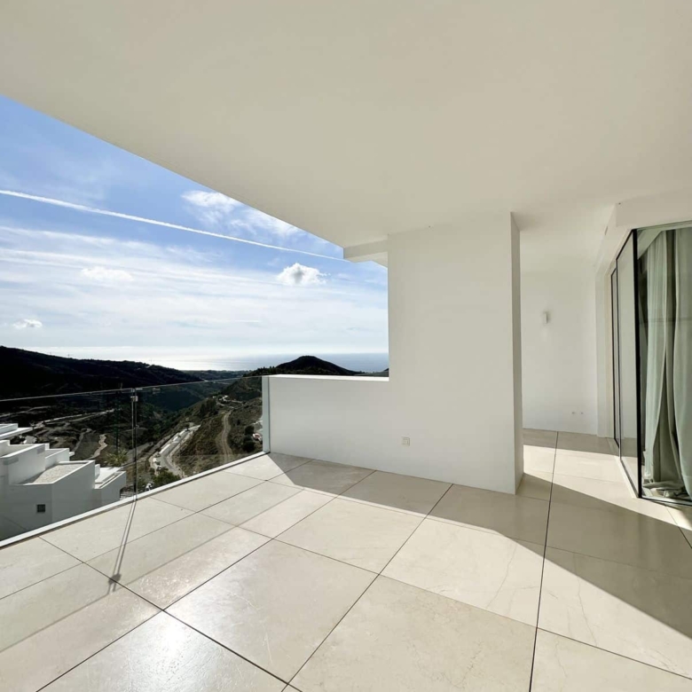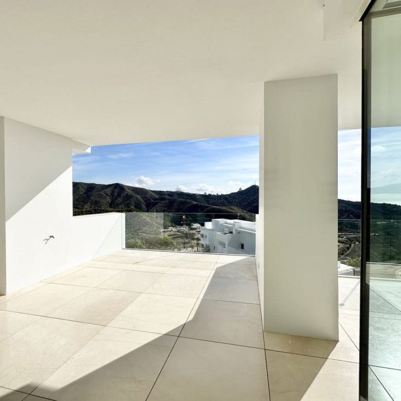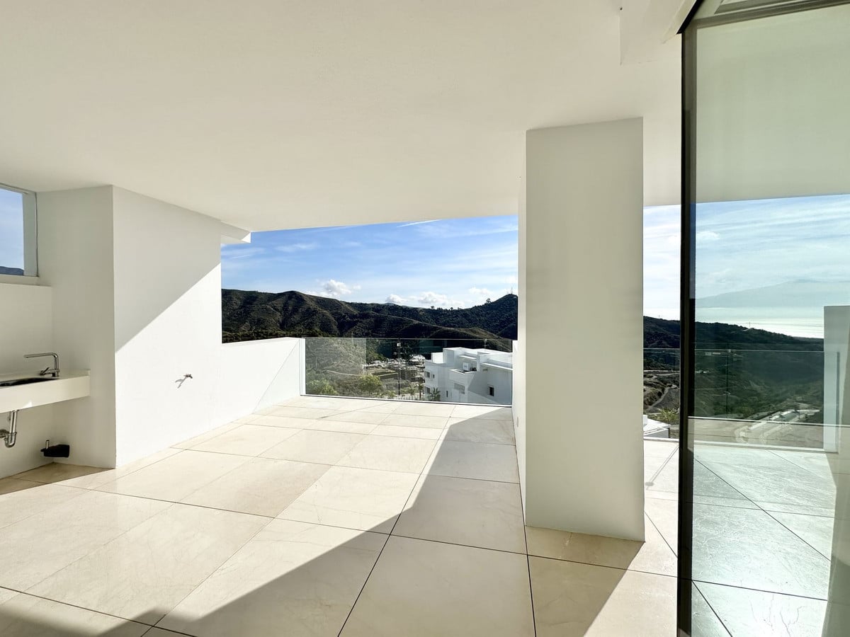 This is an open-plan layout property. The living room is connected to a spacious terrace, where you can enjoy panoramic mountain and sea views. The master bedroom with its ensuite bathroom has access to the terrace. The guest bedroom and bathroom, kitchen and a laundry room. There is UFH through the property and its being sold with an underground parking place and storage.
