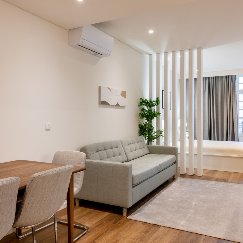 Brand new 2-bedroom (T0+T0) apartment, with 84 sqm of gross private area and a balcony in Marquesa Palace residential building, in the historic centre of downtown Porto. All apartments include air-conditioning, double glass windows, fully equipped kitchens and may come fully furnished. The units feature large areas, plenty of natural light and a modern and functional design to meet the needs and comfort of a cosmopolitan and sophisticated life. Most apartments offer fantastic views over the iconic city of Porto.Resulting from a rehabilitation project of a historical building, Marquesa Palace, whose name pays tribute to its past as it was once the home of noble families and formerly known as “Paço da Marquesa”, aims to perpetuate the urban architecture of the 15th century, by maintaining the original characteristics of the property. The use of premium materials and finishings add it comfort, modernity and charm. Most units have a lockoff concept, in which the client acquires a unit composed of two apartments.Located in downtown Porto, near the emblematic São Bento Railway Station and the D. Luís Bridge, the Marquesa Palace building embraces the dynamics of the historic city centre, a UNESCO World Heritage Site, with all main Porto’s attractions within walking distance. This privileged location benefits from a wide range of services, local shops, and cultural facilities, as well as an efficient transport network and quick access to the entire city.Impacto Capital, an international investment company, owner of the Marquesa Palace building and the project promoter, will provide the option of management services. This management comes with the possibility of a fixed return and the management company may be responsible for all the expenses, including maintenance, condominium, internet, water, electricity and insurance, among others.