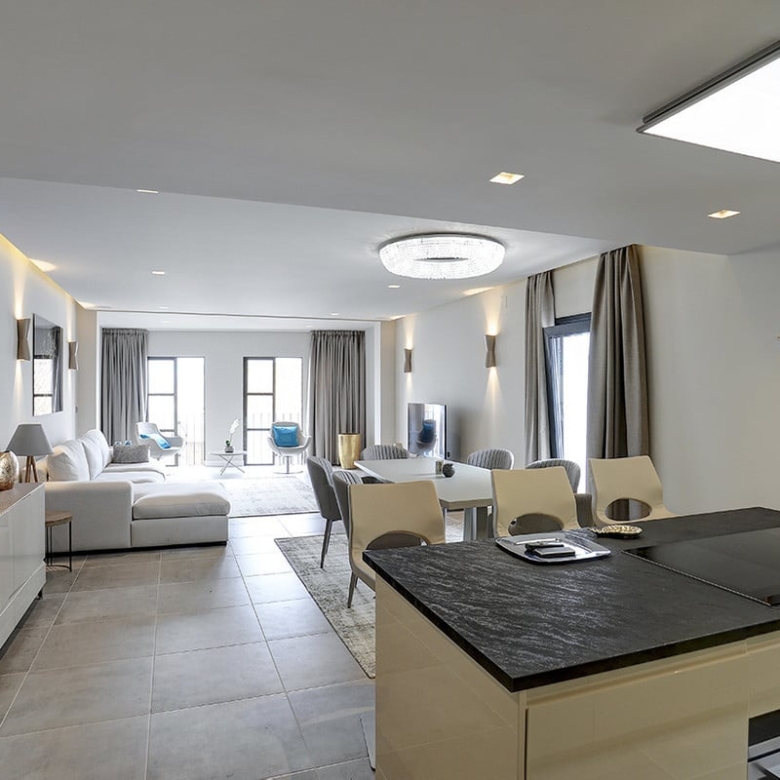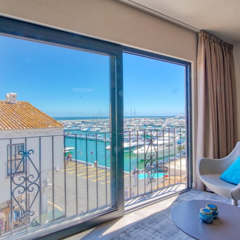 This is a simply beautiful apartment in the fashionable Marina of Puerto Banus with views over the harbour. Completely reformed to a very high standard, it comprises 2 spacious bedrooms, the Master having an ensuite bathroom and another guest bathroom, a large open plan living room / dining room and kitchen. The apartment also has its own parking space in the underground garage. The materials used are all of the best quality and great attention to detail is evident throughout. All the amenities of the Port are on your doorstep and just a 2 minute stroll to arrive at the beach. The apartment generates a good rental income and has low maintenance costs. Well worth viewing for those searching for a quality property in the Port.