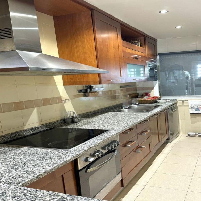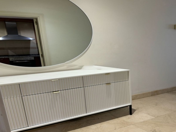 The apartment includes centralised hot/cold air conditioning with temperature controllers in each room. A parking space and a large storage room are included in the price.
