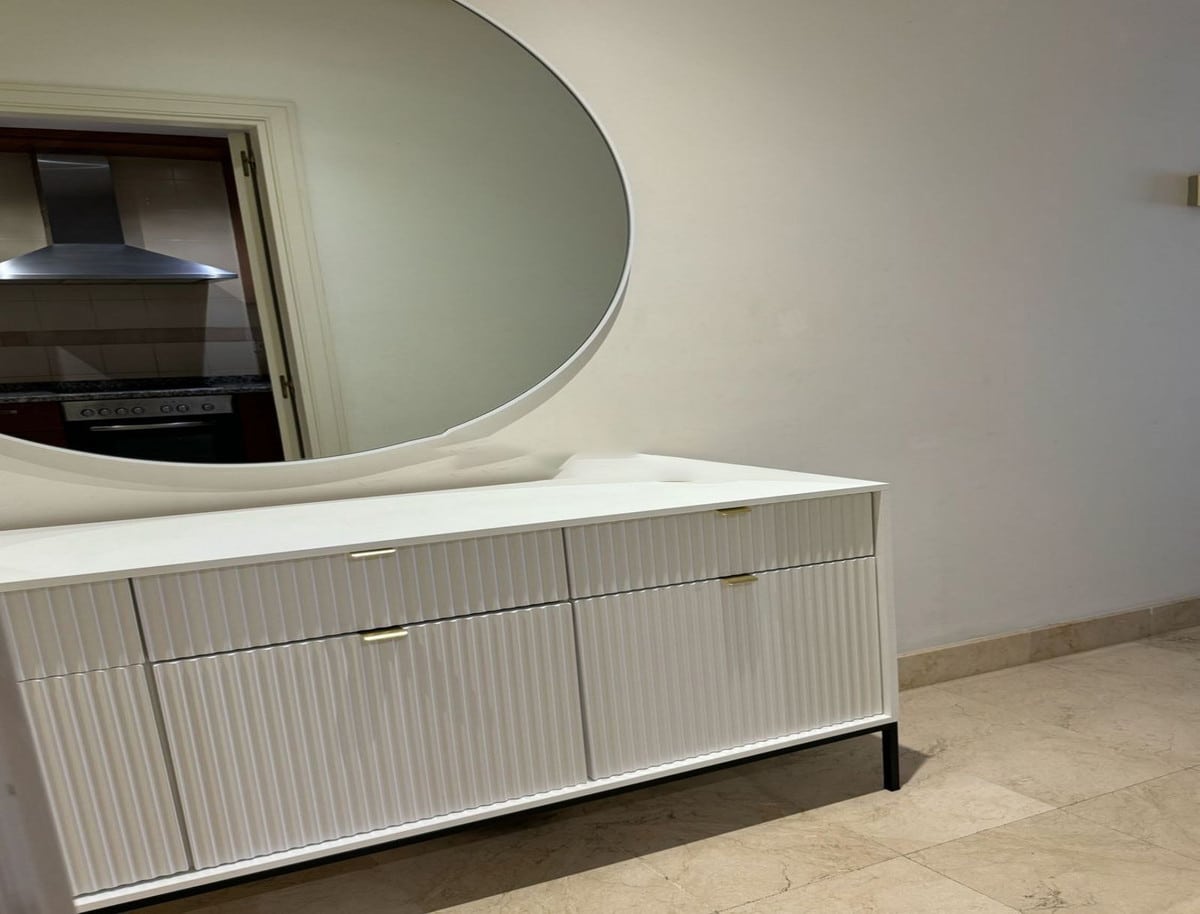 These bright 125 square metre apartments feature a living room, 2 bedrooms, 2 bathrooms and a fully equipped kitchen. A spacious and elegant living-dining room and the master bedroom open onto a terrace area. The kitchen is separate and bright, with a laundry area containing a washer/dryer, boiler and dishwasher. The second bedroom opens onto the outside garden area.