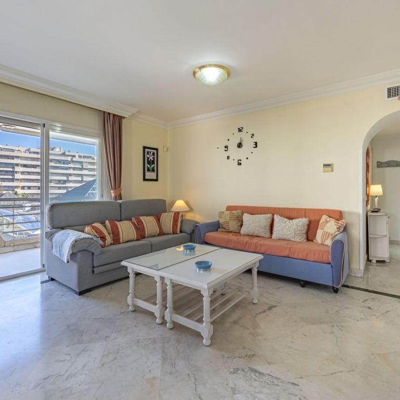 Spectacular flat with partial sea views in Marina Banus. it has two bedrooms in the centre of PUERTO BANUS, the most exclusive area of Marbella, a few meters from the beaches and the promenade. The ideal property to move into, as a second residence or as an investment.
