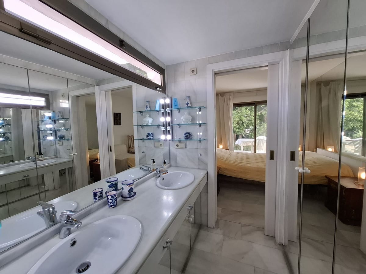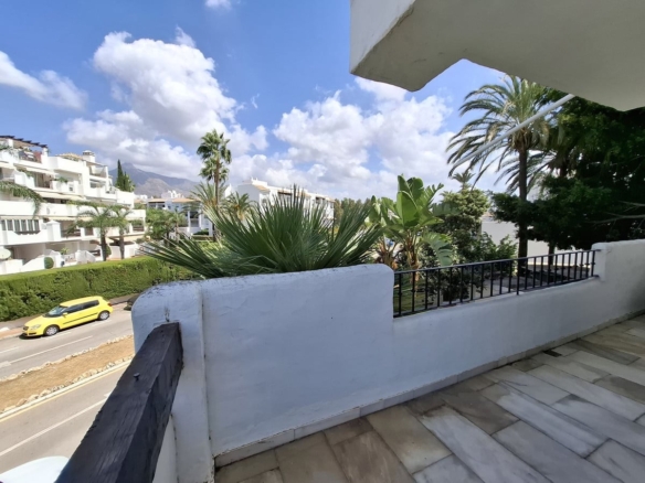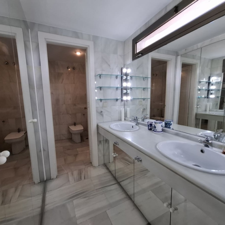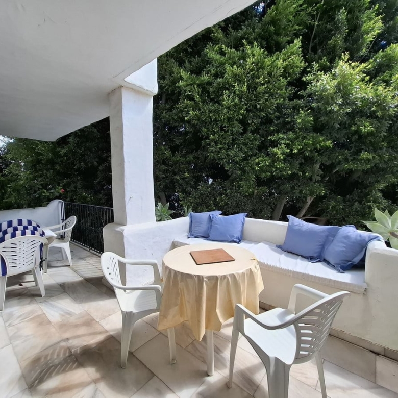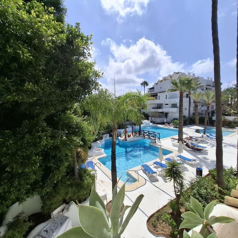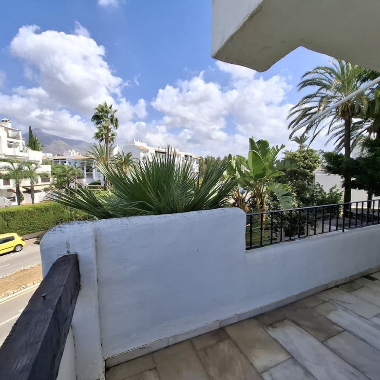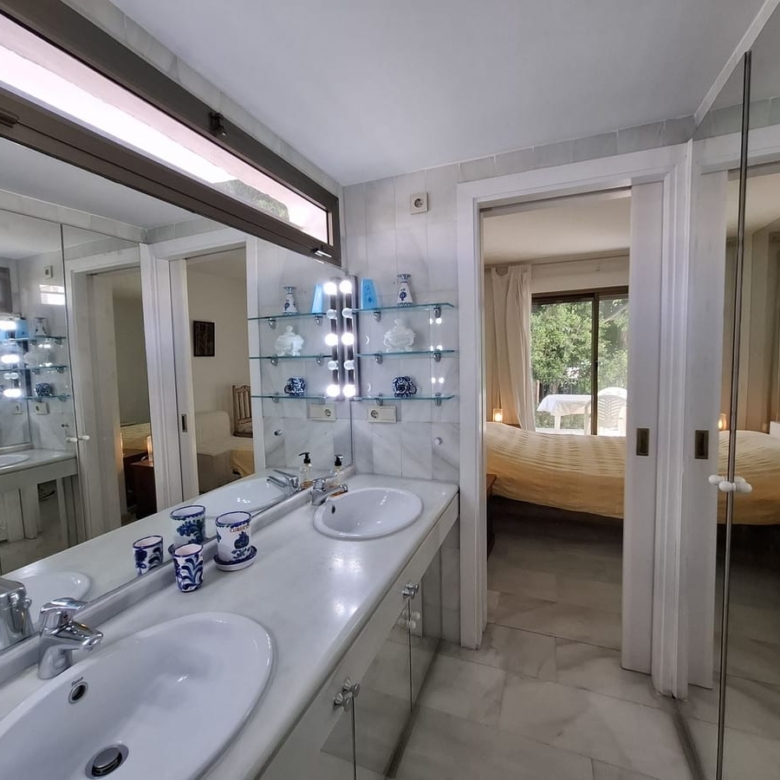 Very nice corner apartment, facing East South and North, with morning sun: many meters of terraces that surround a large part of the house, with open views of the Marbella mountain and looking out onto the fantastic common areas.
