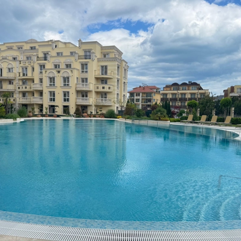 For sale is a high-quality equipped 3-room apartment with a total area of 97.34 m², located on the ground floor of the exclusive Bellicity Apart Complex in Ravda. The apartment offers a direct view of the pool as well as thoughtful living comfort with elegant furnishings and functional equipment.
