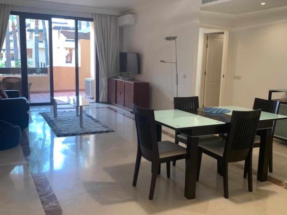 We are delighted to offer for sale this wonderful middle floor apartment in the luxury development of Bahia Alcantara in San Pedro Playa. The property features 2 bedrooms, 2 en suite bathrooms, spacious lounge and dining area leading to the large terrace with beautiful views to the immaculate garden, fully fitted kitchen, marble flooring throughout, air conditioning hot and cold, underfloor heating in the bathrooms, 24 hour gated security, underground parking place with secure storage room and stunning communal pool with direct beach access. This amazing complex is located within walking distance of the town center which enjoys shops, traditional restaurants and bars. ideal for permanent living or a holiday home with very high rental potential. Viewings highly recommended.