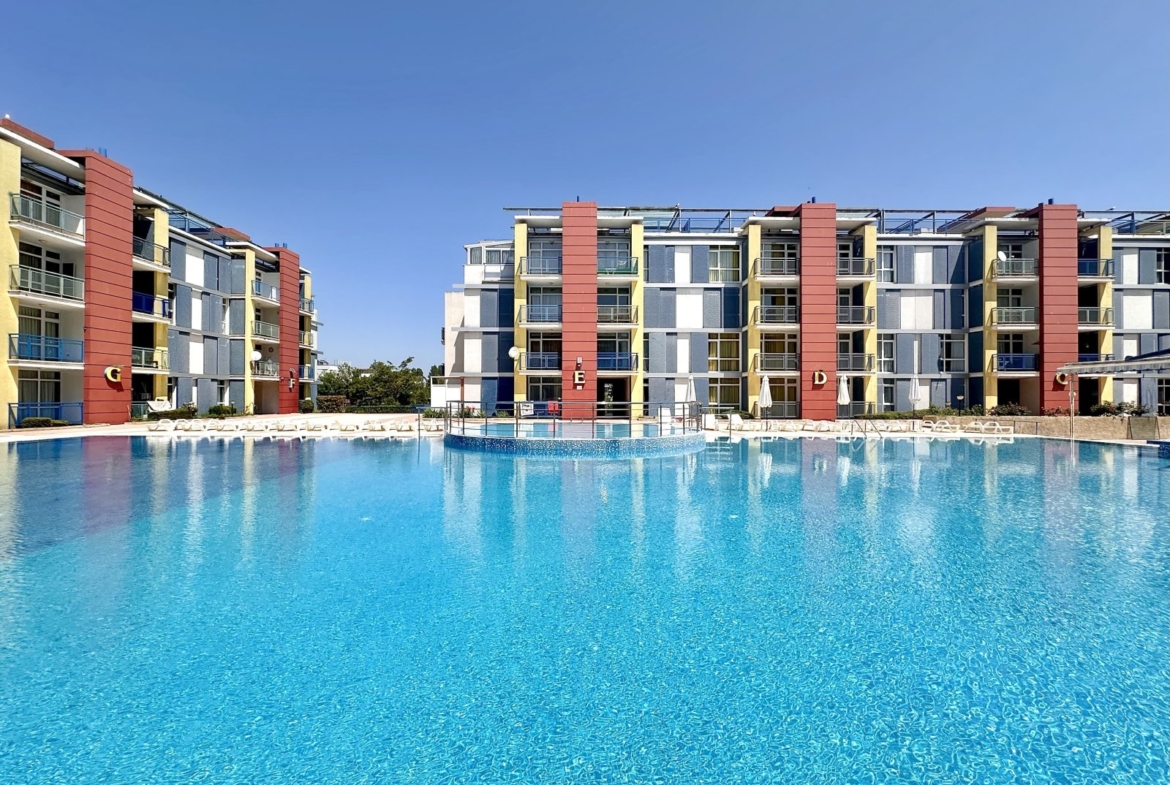 We offer you a charming 3-room apartment in the well-maintained residential complex “Elit 4” – located in the southern, quiet part of the popular resort of Sunny Beach, just a few minutes’ walk from the fine sandy beach and the protected dunes of the Hadjiiska River.