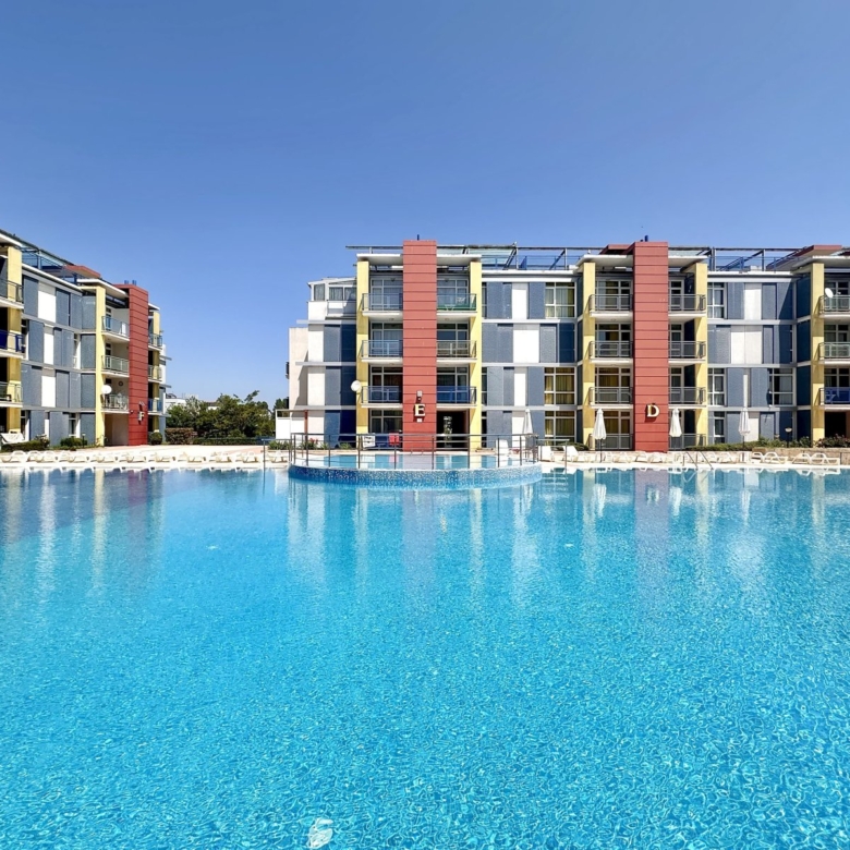 The presence of a vast territory of 9,100 square meters and a wealth of services and entertainment make this complex attractive for both recreation and investment. The well-maintained, landscaped grounds feature a large adult pool with a children’s pool, spacious seating and sun loungers, a gym, medical services, a pool bar, a restaurant and café, a reception and concierge service, a children’s playground, street parking and underground garages. On the rooftops of the buildings, there are also recreational areas such as summer gardens and a hot tub. The security service is open year-round, as is the management company. The “Elit 4” area is unique because it is surrounded by plenty of greenery; trees, shrubs, the presence of a park and a river make this place ideal for a vacation or year-round stay. Everything you need for full leisure is in close proximity: restaurants, cafés, snack bars, grocery stores, and a bus stop from which you can regularly travel to Nessebar or St. Vlas. At the beach, tourists can enjoy the sea and sun in both the paid section and the large free zone. A large number of water activities, luxury restaurants, and bars make Cocoa Beach a unique destination. Nessebar is just 1 km away. The center of Sunny Beach can be reached in just under 15 minutes on foot. “Elit 4” is the perfect combination of coziness, tranquility, and natural beauty. If you want to spend your vacation as pleasantly as possible, then “Elit 4” is the perfect place for you.