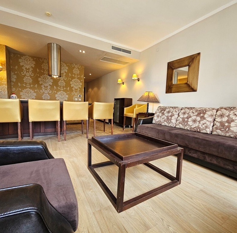 For sale is a spacious 2-room apartment in the prestigious Royal Beach Barcelo complex in the heart of Sunny Beach, just a few steps from the beach.