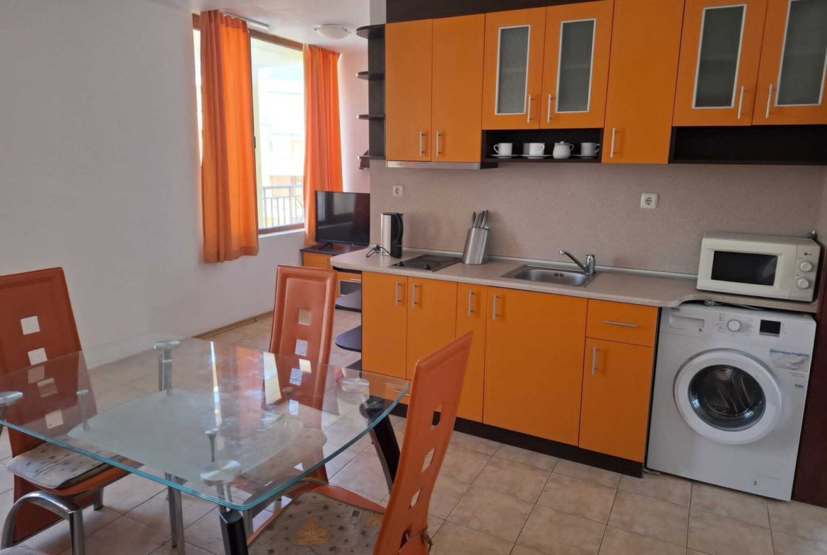 The apartment consists of a spacious living room with a kitchenette, two bedrooms, a bathroom, and a balcony with sea views. The complex is situated in a quiet area and is maintained year-round. Sveti Vlas is a charming coastal town on the Bulgarian Black Sea coast, just a few kilometers from Sunny Beach and the UNESCO World Heritage Site of Nessebar.