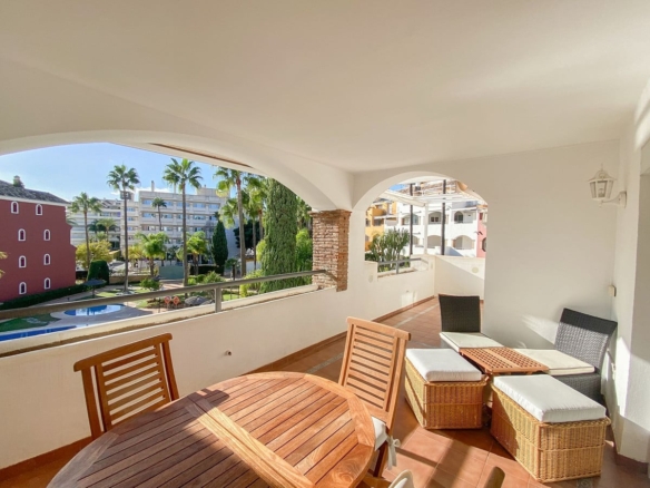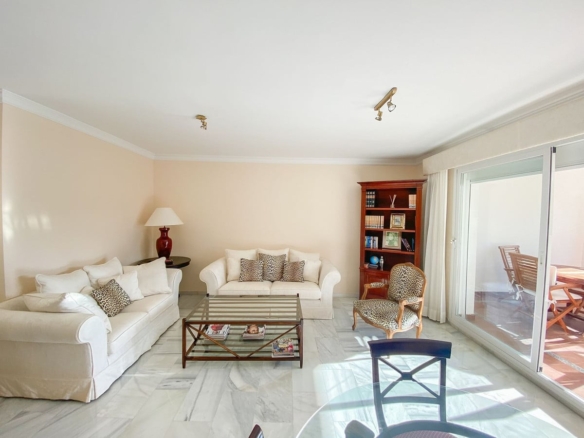 Fantastic apartment on the Golden Mile within walking distance of the beach and the center of Marbella. Located in a complex with swimming pools, tropical gardens and two paddle courts.
