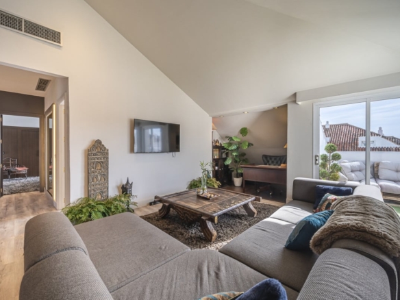 This penthouse apartment is located in Las Lomas del Marbella Club in a prestigious urbanization with well kept communal gardens, 3 swimming pools, one of them heated in spring and 24 hour concierge/security service.