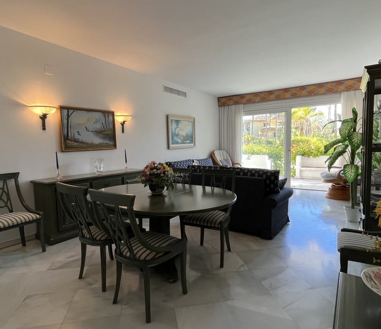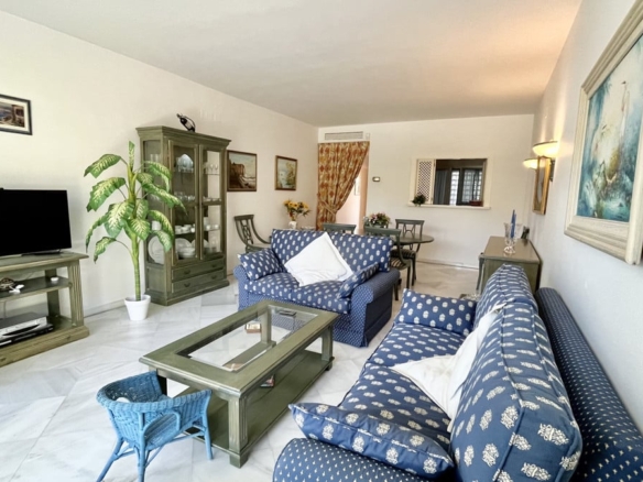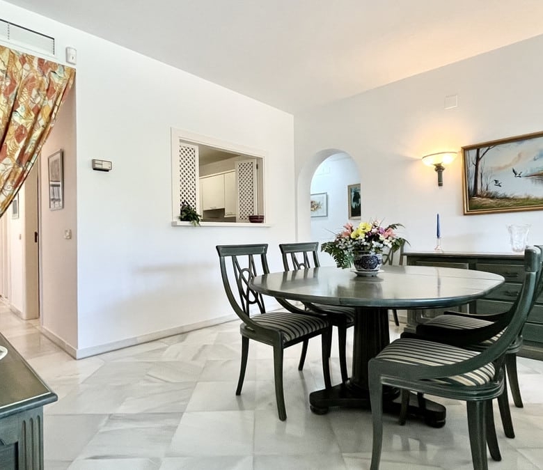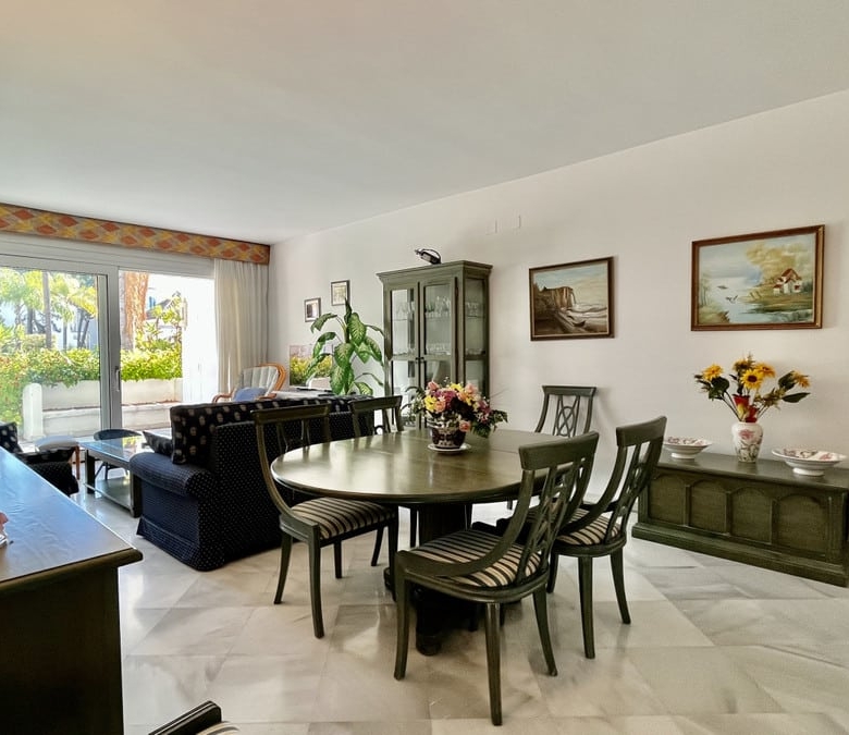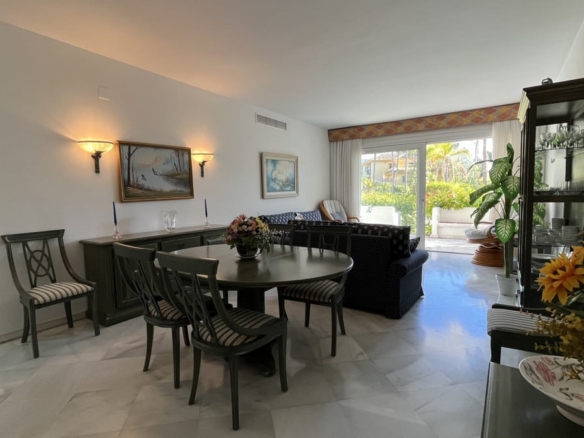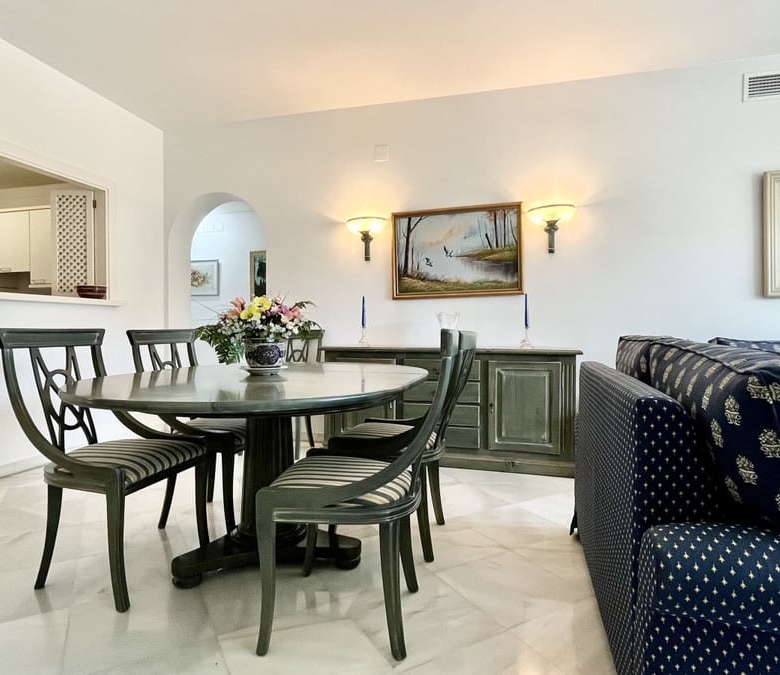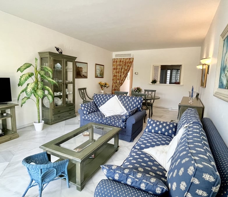 very desirable complex with lush mature gardens and swimming pool, right on the promenade, just a stone’s throw away from all the restaurants and amenities of Marbella centre and Marbella’s Golden Mile. The apartment consists of an entrance way, ample living/dining room, master bedroom with bathroom en suite, guest bedroom with balcony,