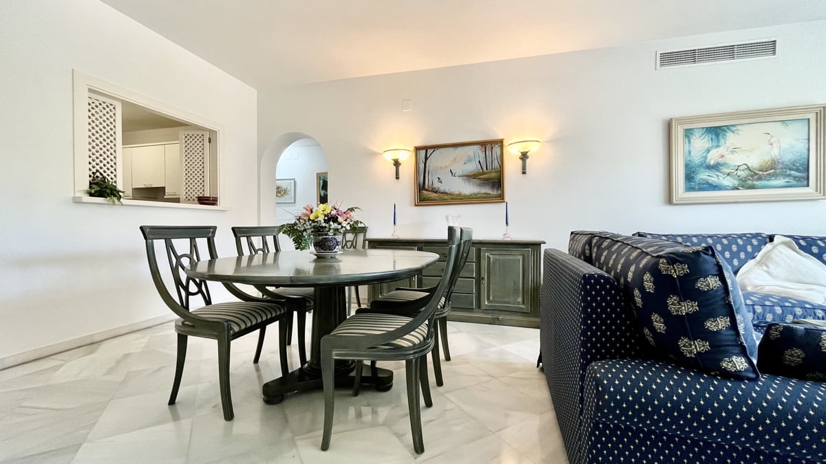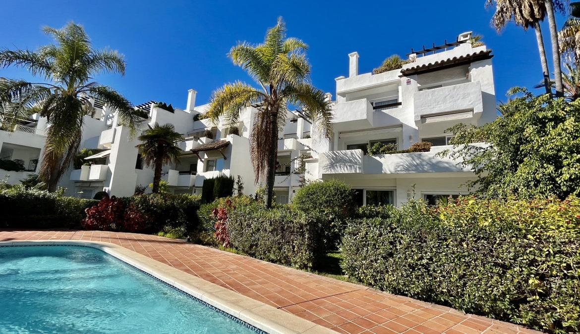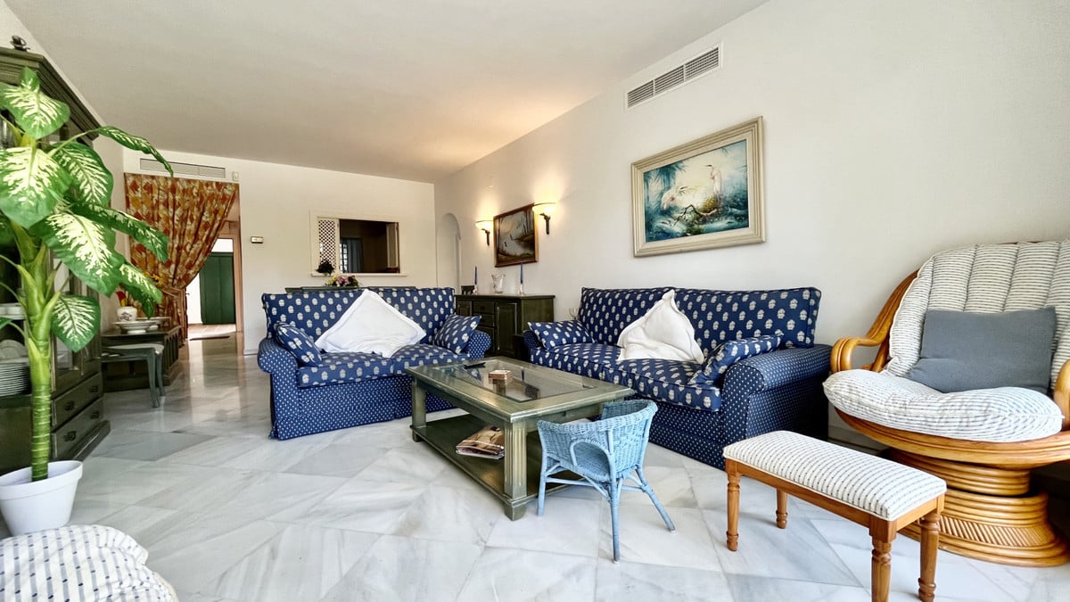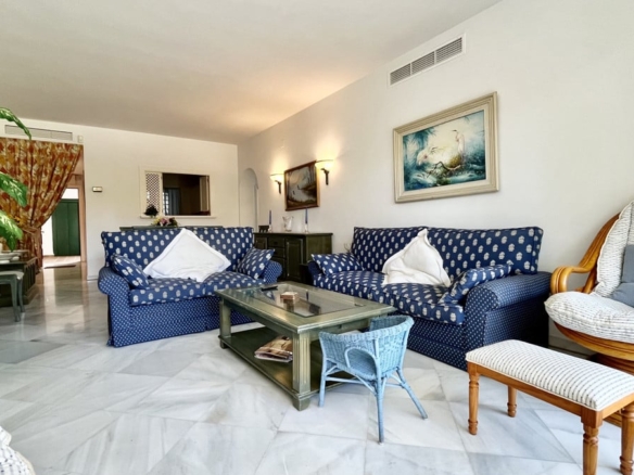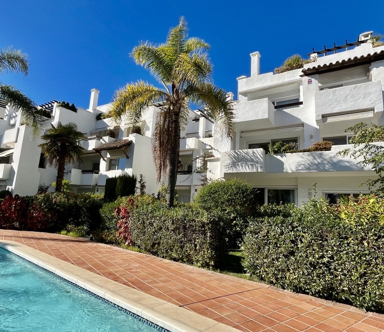 very desirable complex with lush mature gardens and swimming pool, right on the promenade, just a stone’s throw away from all the restaurants and amenities of Marbella centre and Marbella’s Golden Mile. The apartment consists of an entrance way, ample living/dining room, master bedroom with bathroom en suite, guest bedroom with balcony,