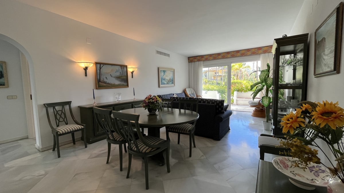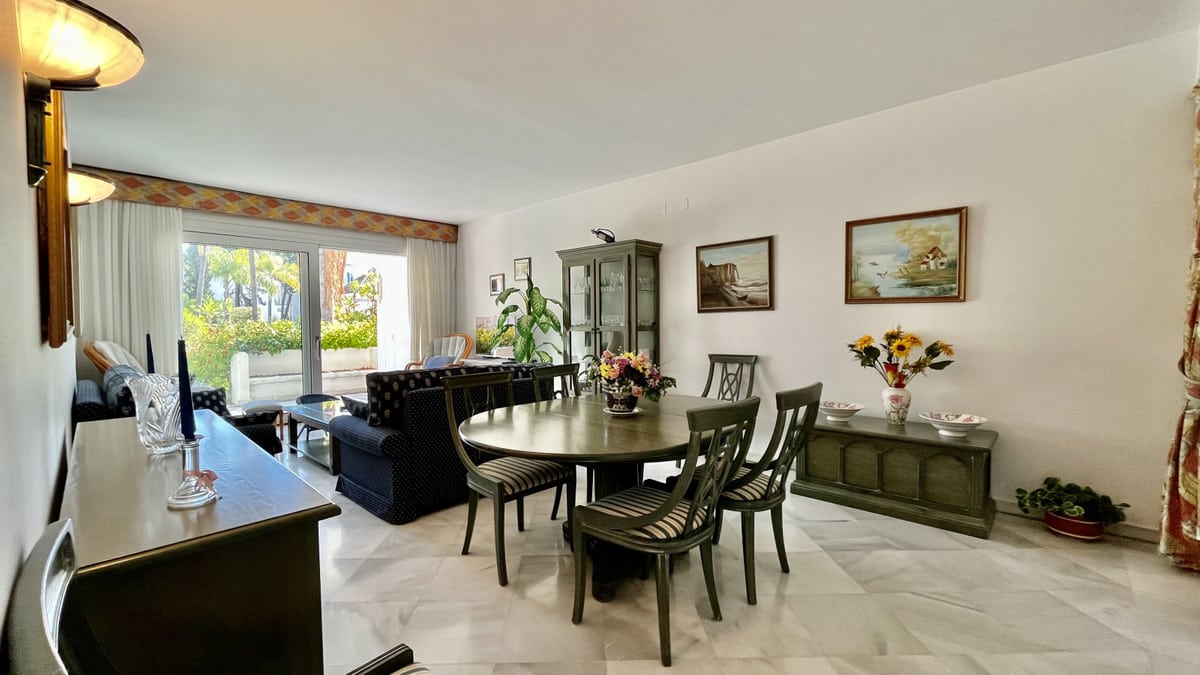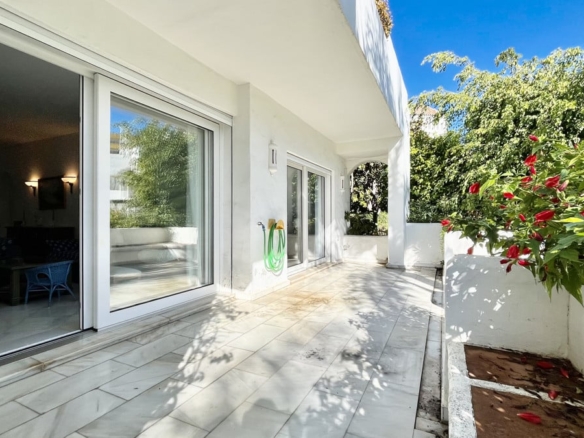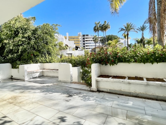 BEACHSiDE * WALKiNG DiSTANCE TO MARBELLA CENTRE & ALL AMENiTiES * Cheerful corner ground floor two bedroom apartment just steps from the beach. Located in a