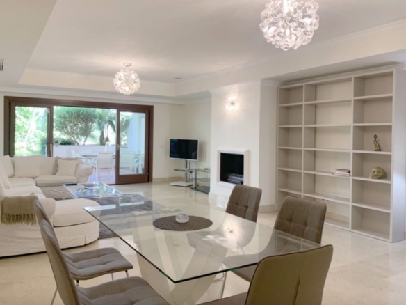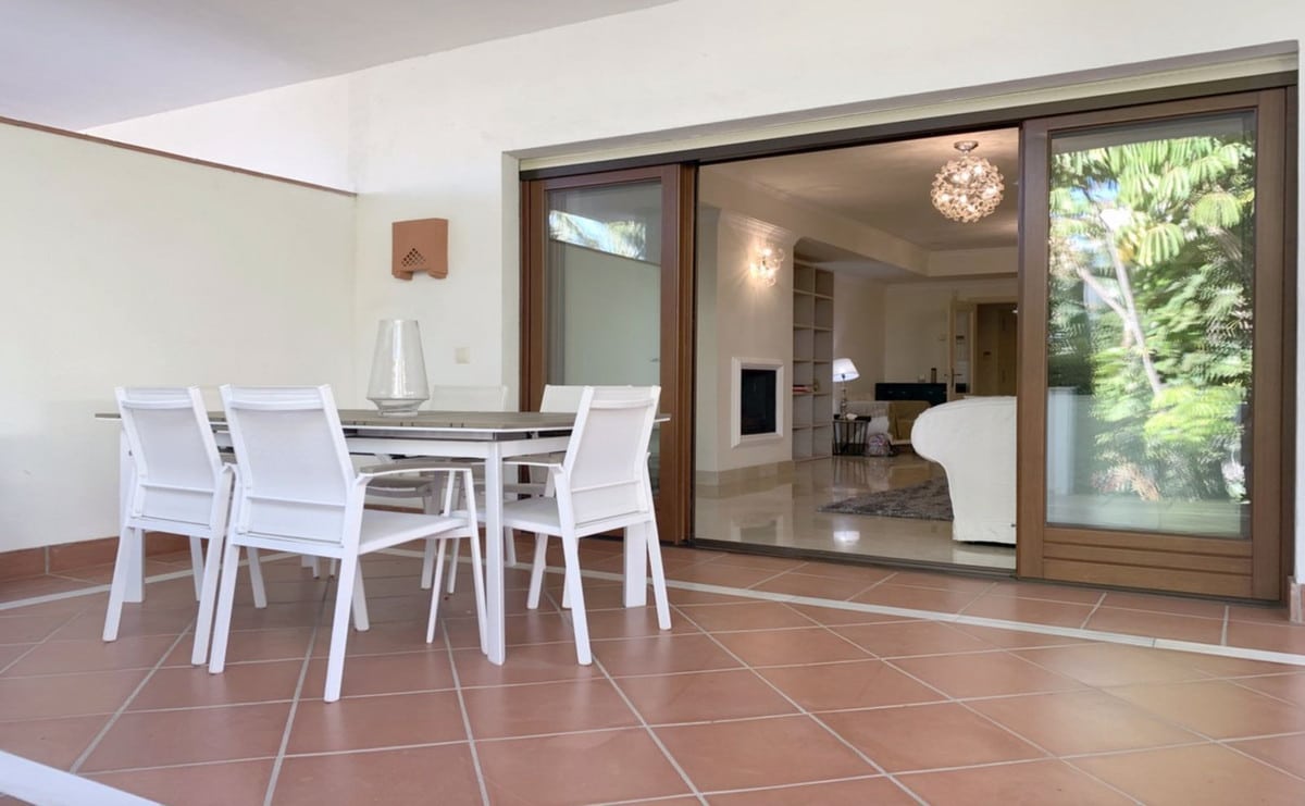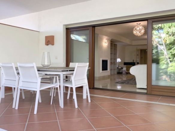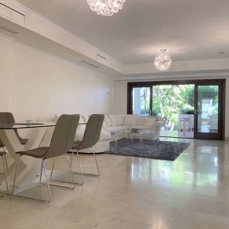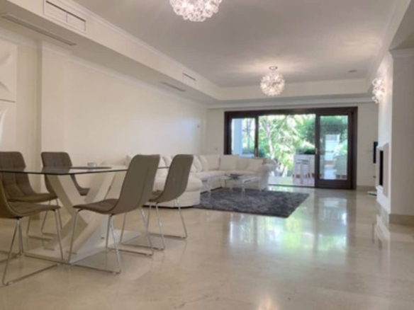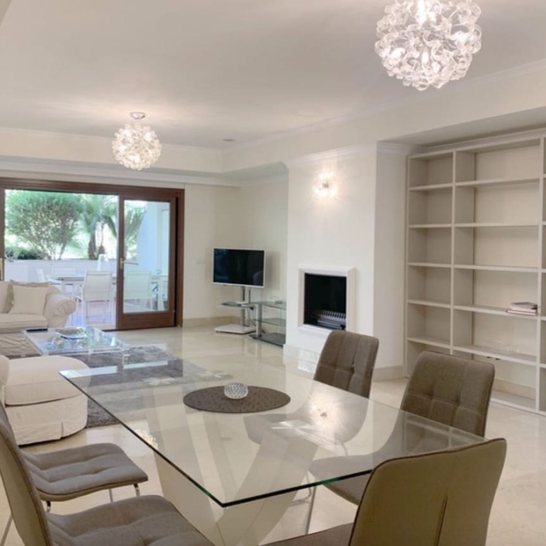 Beautiful – luxurious corner apartment in stunning urbanisation ̈Lomas del Rey ̈ in The Golden Mile! This apartment consists of two large bedrooms with en suite bathrooms, guest toilet, large kitchen with dining room, cozy living room with fireplace, large terrace and garden. All rooms have air conditioning and underfloor heating.