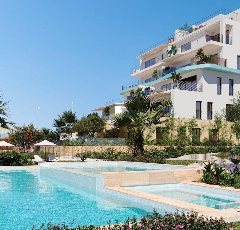 Newly built homes on the seafront, Playa del Torres, Villajoyosa, Alicante.22 homes on the beachfront, bathed in the warm light of the Mediterranean.An exclusive residential area that offers 1, 2 and 3 bedroom homes. You can choose between ground floors with gardens, apartments with large terraces and penthouses with solariums, all of them with unparalleled views of the sea.Located just 50 meters from the shore, this oceanfront oasis offers you spacious spaces full of natural light that invite you to relax and enjoy the impressive views from its generous terraces. Every detail of its avant-garde design has been carefully planned to make the most of the light, making the terraces the ideal place to disconnect and enjoy the sea breeze while contemplating the horizon.Located on the beachfront, in a stunning natural environment, this development offers a wide range of amenities, including an outdoor pool, gardens, children’s area, equipped gym, heated pool and sauna.The exceptional quality of the materials merges harmoniously with nature in the architecture, thus creating a unique residential project, designed to provide you with an environment where you can enjoy the life of your dreams.The homes have large terraces and sea views, allowing you to enjoy the sunrise from the front row. We invite you to live the Mediterranean in a special way: without noise, without traffic jams and away from the crowds.Each home has been designed with exquisite detail, offering fully equipped kitchens, central air conditioning with Air Zone system, underfloor heating, complete bathrooms with suspended toilets, furniture, mirrors and shower screens, automatic blinds, home automation system and much more .Located in Playa del Torres, Villajoyosa. Close to all types of shops and services, and well connected to the towns of Villajoyosa and Benidorm, and to the A7 motorway that runs along the Mediterranean coast.