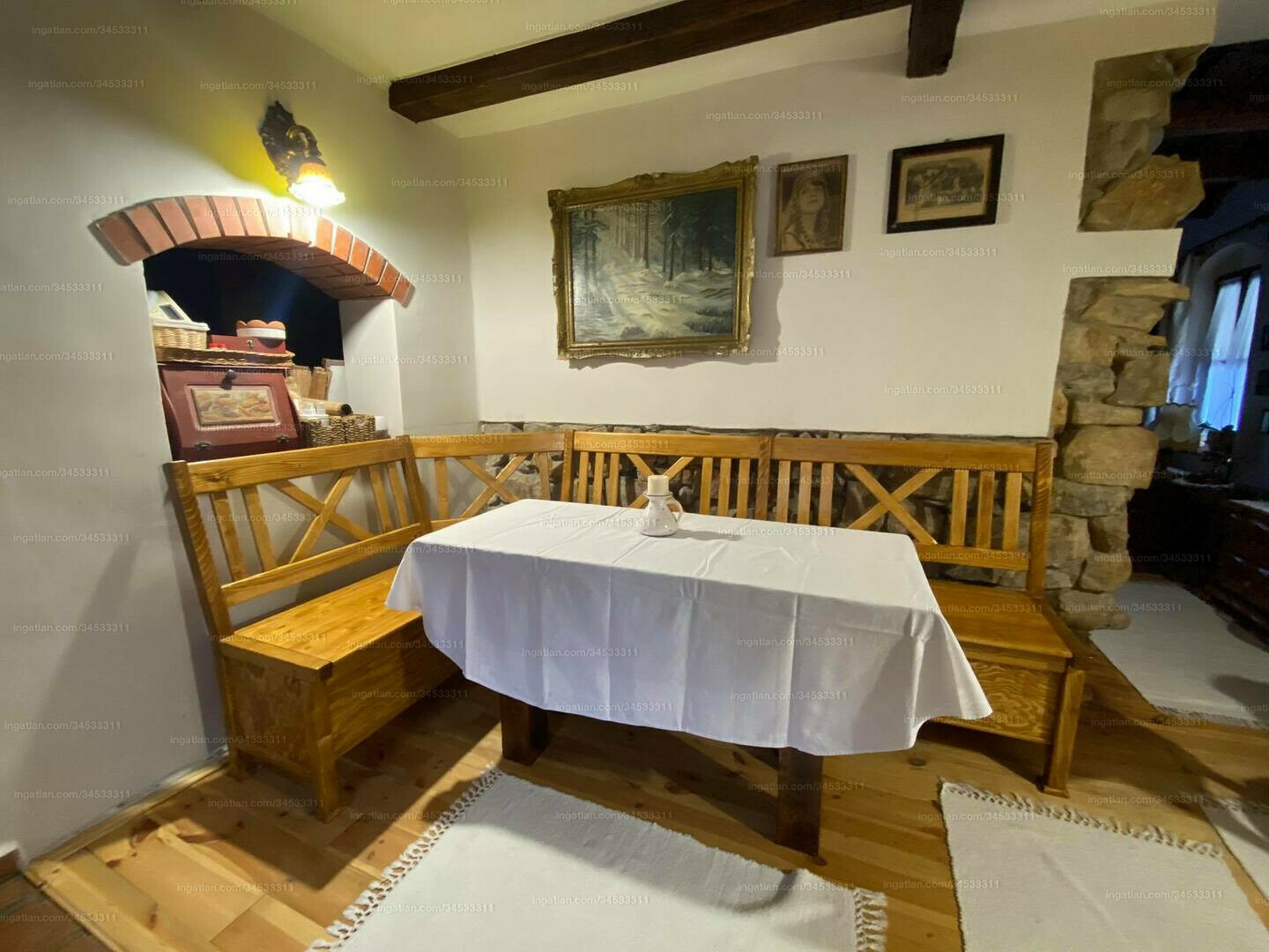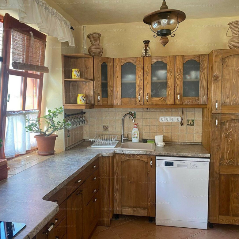 House #2, a newly built rustic dwelling, exudes a charming old-fashioned style while incorporating modern conveniences. This 85-square-meter residence features a kitchen, a living room, a bedroom, a storage room, a closet, and a bathroom with a bathtub, providing a comfortable and inviting living space. The rustic design elements, combined with modern amenities, create a unique and appealing ambiance.