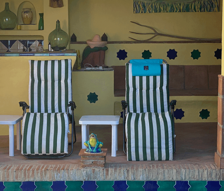 Green Bedroom — This room has twIn beds, bedroom cupboards and two double wardrobes. The bathroom is en-suite and has a walk-in shower, toilet and wash hand basin. The stairs then continue to a top floor terrace with spectacular views of the countryside, Straits of Gibraltar and the top of the village with the famous Gaucín Castle.