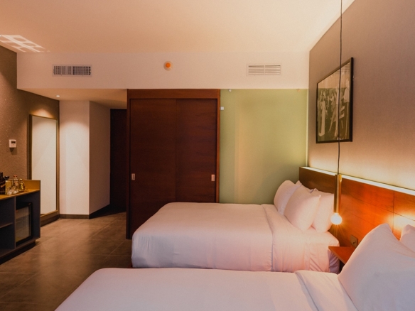 Amenities include a fully equipped restaurant, two elevators for efficient vertical access, and a rooftop pool and bar with open-air views of the city skyline. Additional features, such as a dedicated wine cellar and cigar room, offer guests enhanced luxury experiences. A full-capacity diesel backup generator supports the entire hotel’s operations, ensuring uninterrupted service in any condition.