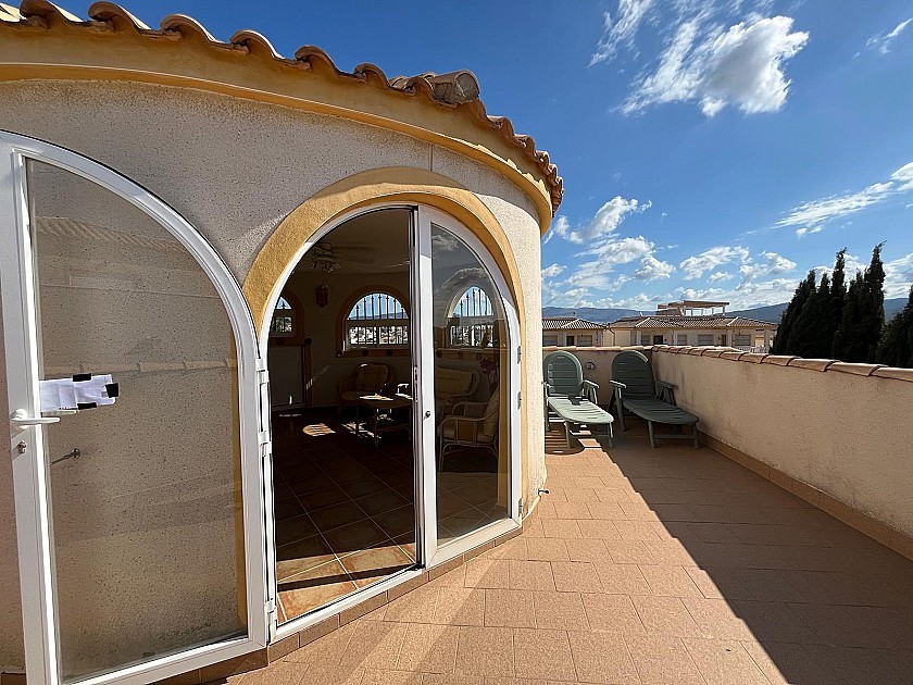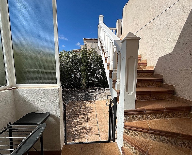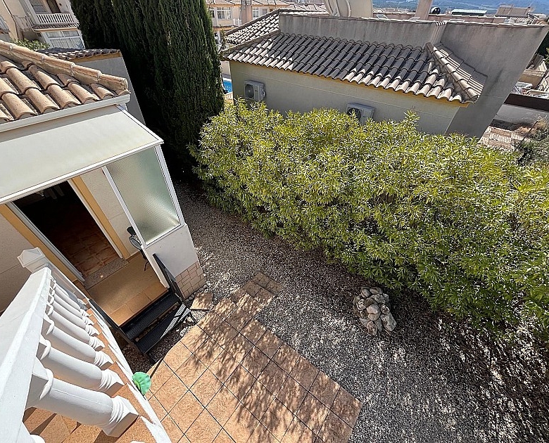 The villa boasts the delightful advantage of having two distinct gardens: one situated at the front of the property and another at the rear. The front garden is generously sized and offers ample space for those who desire the addition of a private swimming pool. Imagine the pleasure of having your own personal oasis to cool off in during the warm Spanish summers. However, for those who prefer a more communal approach, the beautiful communal swimming pool is a mere stone’s throw away, offering a fantastic alternative for swimming and socializing within the urbanisation.