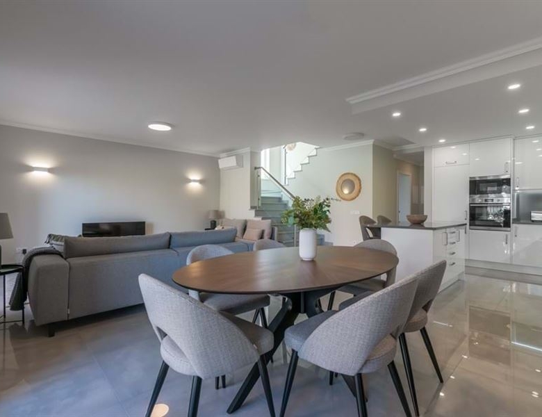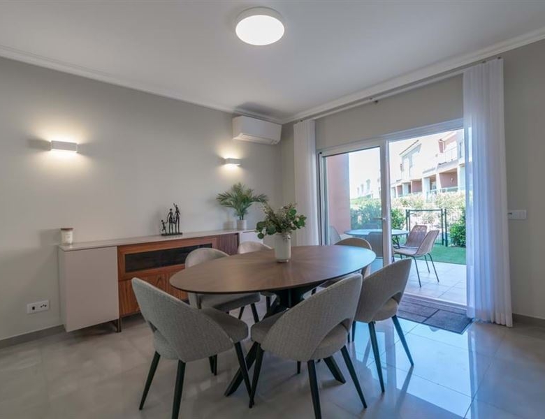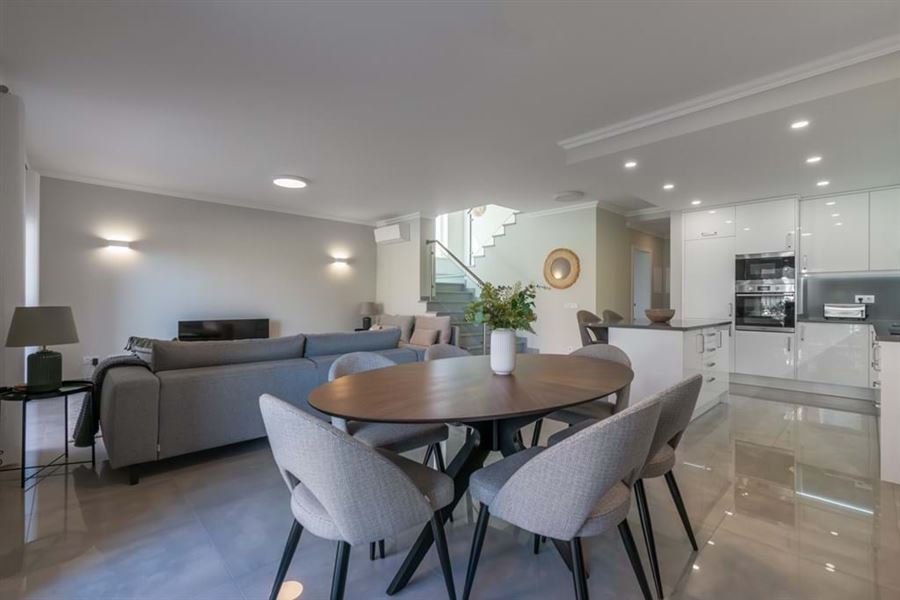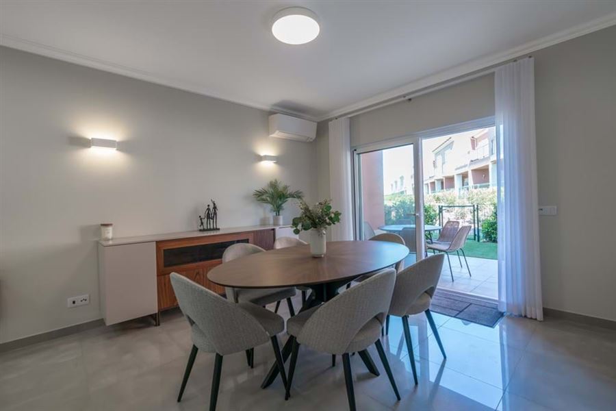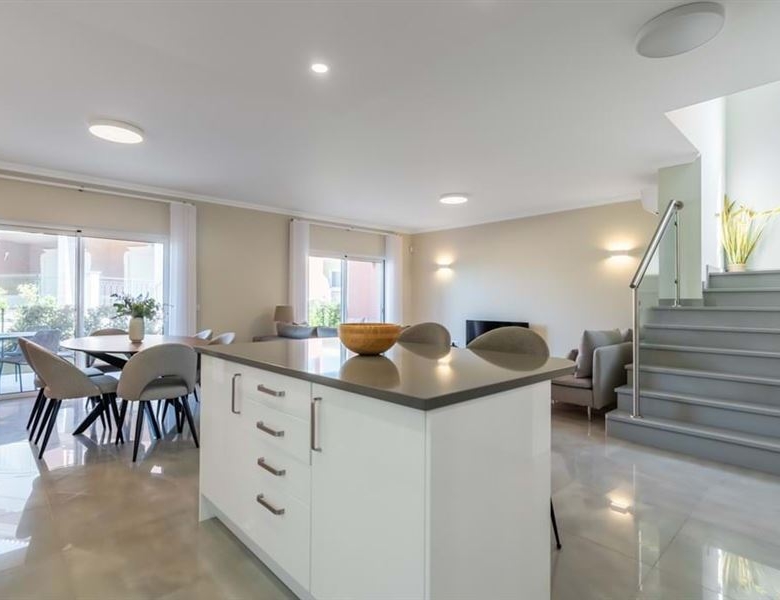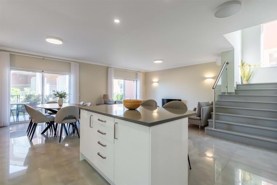 Situated within a prestigious golf resort in Lagos, this handsome 3-bedroom townhouse offers the perfect blend of city-side living and doorstep golf access. ideally located just a 10-minute drive from both Lagos city centre and fabulous Algarve beaches, this recently built, two-story property is crafted to the highest standards of comfort and style.On the Ground Floor, a welcoming entry hall flows seamlessly into a spacious open-plan living area, which includes a generous dining space and a fully equipped kitchen, perfect for entertaining. The ground floor also features a guest bathroom and direct access to a large outdoor terrace, complete with a beautifully landscaped garden and lounge areas, ideal for relaxing or hosting guests.Upstairs, on the first floor, the townhouse boasts three spacious bedrooms, each with its own luxurious en-suite bathroom and access to a private balcony. The bedrooms are designed for maximum comfort and privacy, offering the perfect retreat at the end of the day.Additional Features:Air conditioning for year-round comfortDouble-glazed windows for energy efficiencyElectric shutters for added security and convenienceFitted wardrobes providing ample storage spaceSecurity alarm system for peace of mindPrivate driveway and a large garage offering ample parking spaceResidents of this exclusive golf resort enjoy access to a range of world-class amenities, including:Communal swimming pool and children’s poolSpa, indoor heated pool, Jacuzzi, and saunaFully equipped gymTennis courtsRestaurants and cafes within the resortScenic golf courses with stunning viewsThis exceptional property is located just 10 minutes from Lagos city centre, offering both peaceful surroundings and easy access to daily conveniences. Beautiful beaches such as Praia de Porto Mós and Praia da Luz are only a short drive away, making this townhouse the ideal base for those looking to enjoy the best of both nature and city life in the Algarve.Key Features:3 Bedrooms with en-suite bathrooms and balconiesOpen-plan living and dining areaFully equipped kitchenPrivate garden and outdoor terraceAir conditioning, double-glazed windows, and electric shuttersLarge garage and private drivewayAccess to world-class golf resort amenities