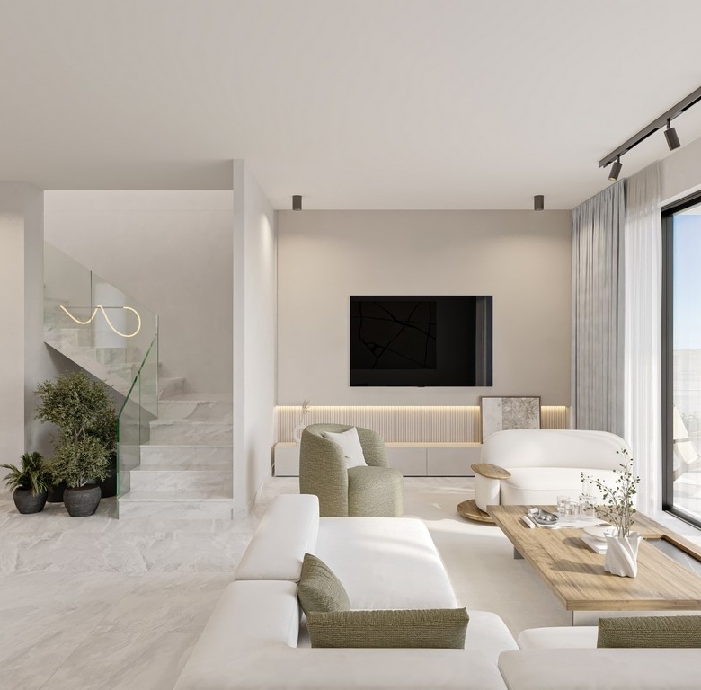 These 3- and 4-bedroom villas feature modern architecture, spacious interiors, and generous plots, blending contemporary elegance with locally inspired materials. Positioned only 9 minutes from Paphos center, 5 minutes from the beach, and 4 minutes from Tala village, Aquila provides the perfect setting for both investment and permanent living.