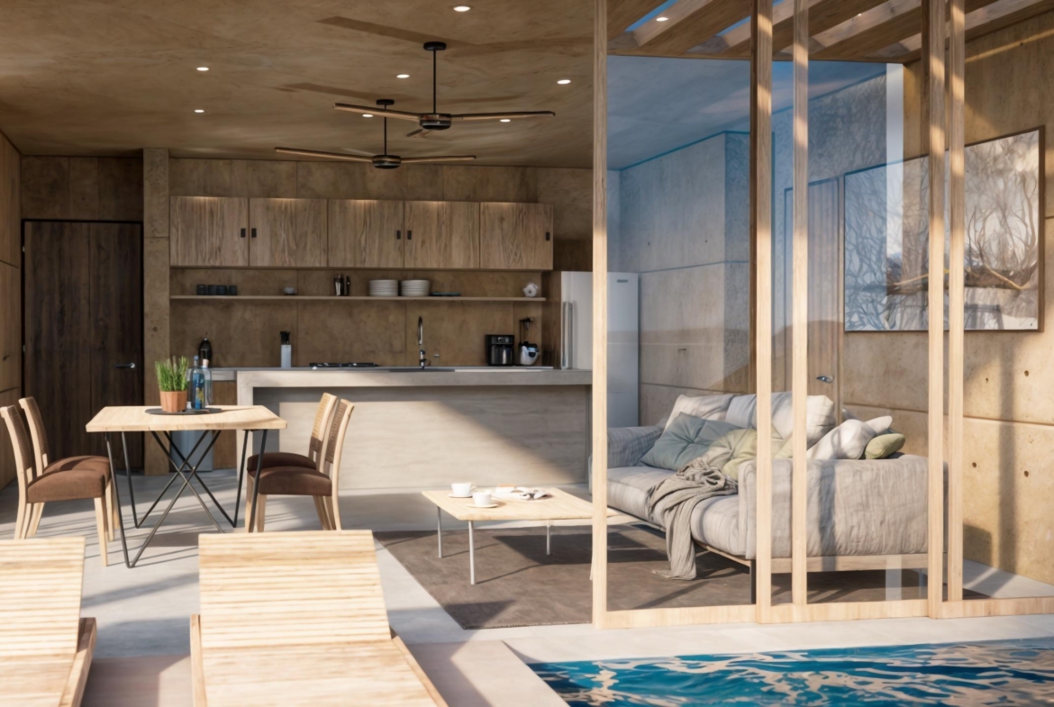 Endless Oceanfront Living on the Oaxacan Riviera – The Porfiria Floorplan at Villas Biznaga Step into the essence of coastal elegance and the art of slow living with the Chilita floorplan—a thoughtfully designed villa offering 3 spacious bedrooms, 3.5 bathrooms, and 1,674 square feet of elevated, ocean-inspired architecture. Every detail of this home is crafted for serenity, simplicity, and style. Located within an exclusive gated community nestled between Puerto Escondido and Huatulco, Villas Biznaga offers a rare blend of privacy, natural beauty, and easy access to daily essentials. You’re less than 15 minutes from local convenience stores, supermarkets, and markets offering fresh produce, seafood, and artisanal foods like just-caught fish and shrimp. Wake up to panoramic, uninterrupted views of the Pacific Ocean. Enjoy your morning coffee on one of the villa’s expansive terraces, or relax in your private plunge pool, where indoor-outdoor living flows effortlessly. This is coastal living at its finest, with small, charming beach towns just 10 minutes apart—each one offering unique experiences, from fine dining and beachfront cafes to vibrant local culture. Villas Biznaga is a low-density, wellness-focused community designed to nurture a connection with nature, promote mindful living, and support a balanced lifestyle. Here, you can build your dream home directly with the builder—avoiding developer markups and allowing for a more personalized experience. Renderings are conceptual and subject to change without notice.