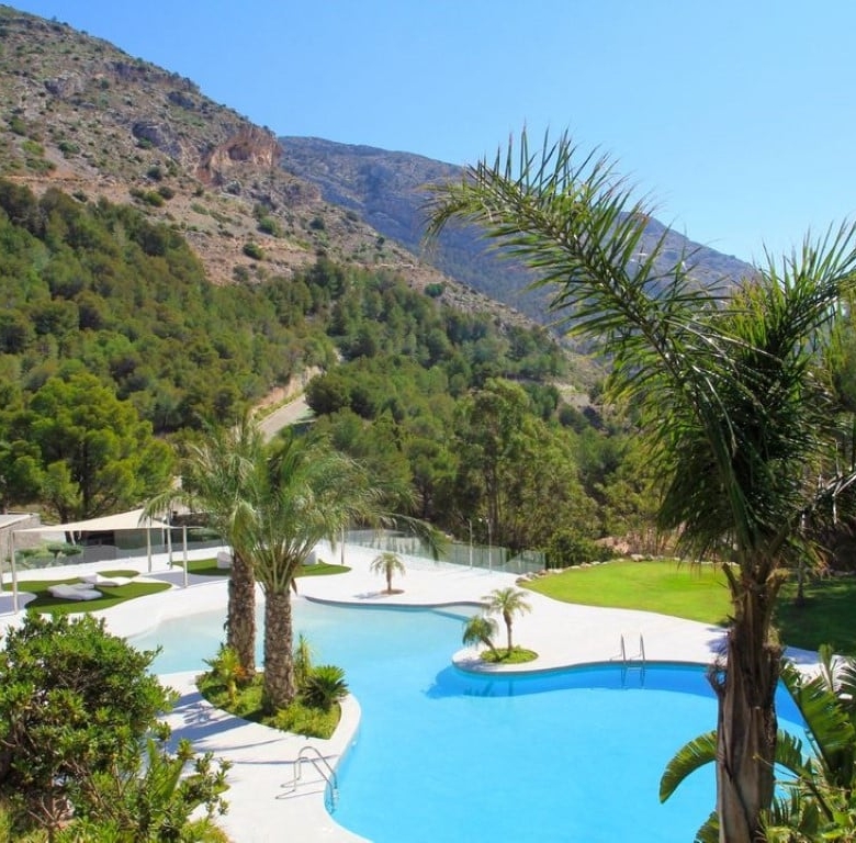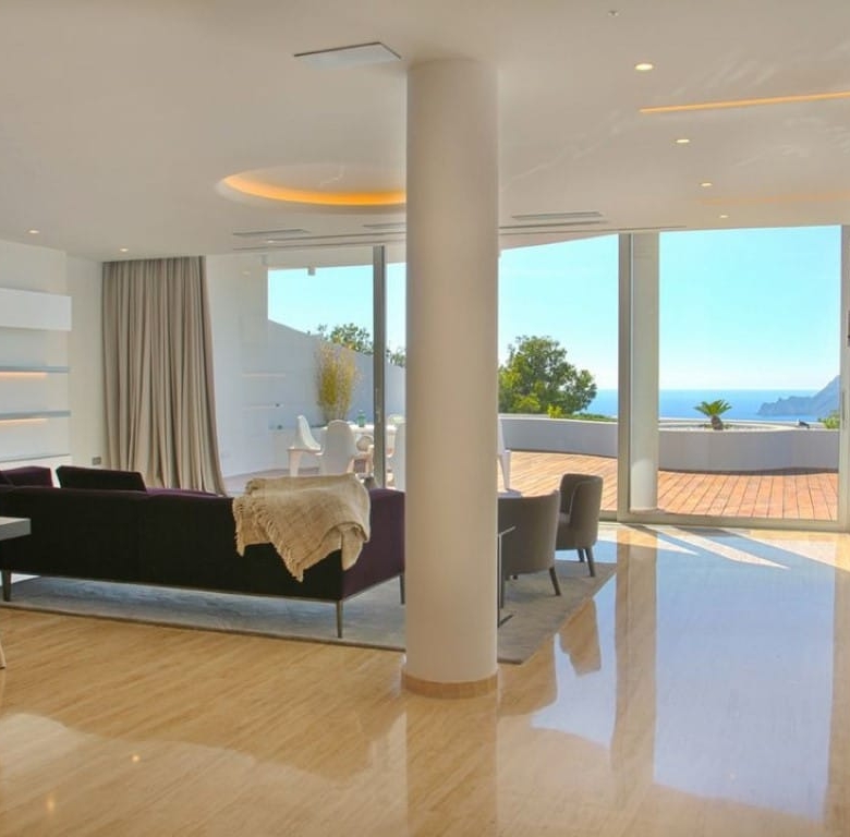 This beautiful spacious apartment is located on the third floor and is located in a quiet and green area of ​​Altea Hills and offers breathtaking views over the countryside and the sea. The apartment offers a spacious lounge with dining area, a fully fitted modern kitchen, a guest toilet, 2 double bedrooms, 1 bathroom and the master bedroom with dressing area and bathroom en suite. All bedrooms have direct access to the large terrace with Jacuzzi which extends the entire length of the apartment. The apartment offers a closed parking space in the parking garage which is suitable for 2 cars and there is a storage room. in addition, the complex offers a very large swimming pool with garden, a gym and a children’s playground. Keyready march 2024