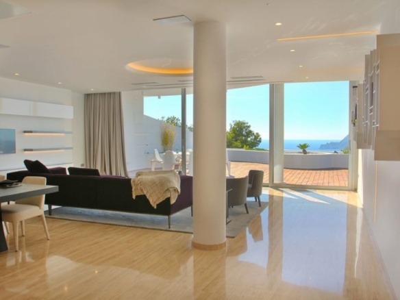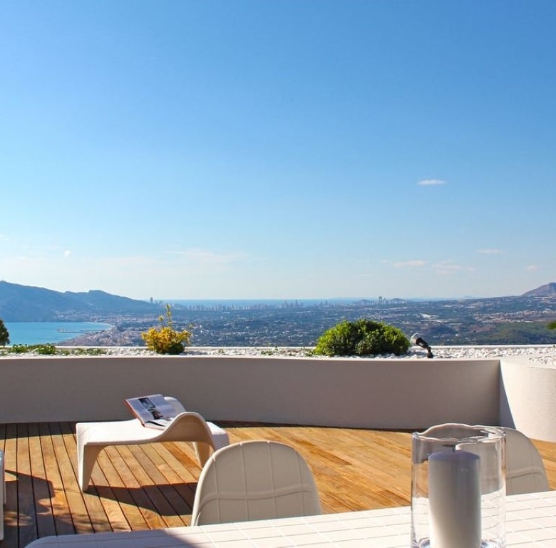This beautiful spacious apartment is located on the third floor and is located in a quiet and green area of ​​Altea Hills and offers breathtaking views over the countryside and the sea. The apartment offers a spacious lounge with dining area, a fully fitted modern kitchen, a guest toilet, 2 double bedrooms, 1 bathroom and the master bedroom with dressing area and bathroom en suite. All bedrooms have direct access to the large terrace with Jacuzzi which extends the entire length of the apartment. The apartment offers a closed parking space in the parking garage which is suitable for 2 cars and there is a storage room. in addition, the complex offers a very large swimming pool with garden, a gym and a children’s playground. Keyready march 2024