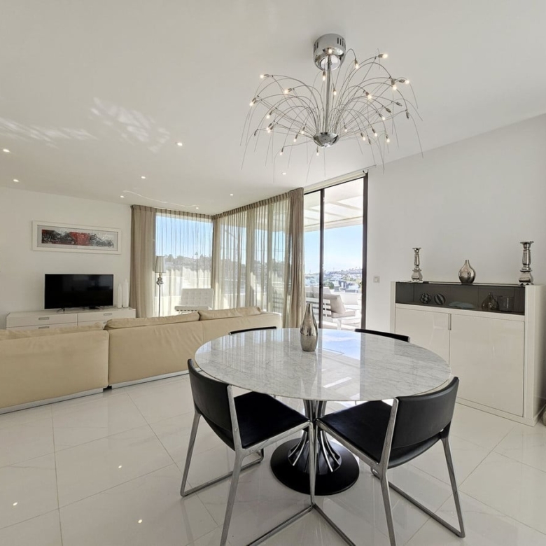 Open-Plan Living and Dining Area: A stylish, open layout with access to a private terrace, allowing for easy indoor-outdoor flow.
